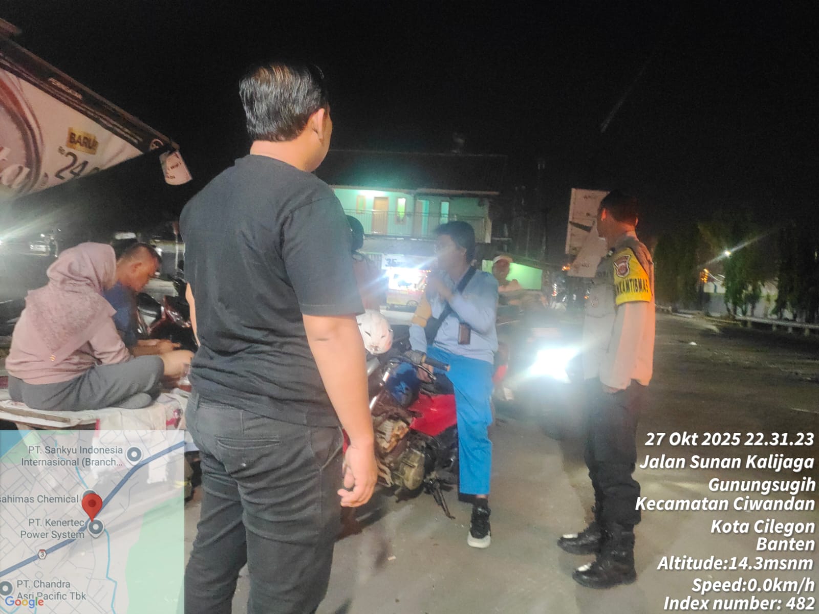 Cilegon - Personil Polsek Ciwandan Polres Cilegon Polda Banten Selalu Melaksanaan Kegiatan KRYD (Kegiatan Rutin Yang Ditingkatkan) Patroli Rutin malam hari di daerah hukum Polsek Ciwandan Guna Persempit Ruang Pelaku Tindak Kejahatan, Selasa (28/10/2025).