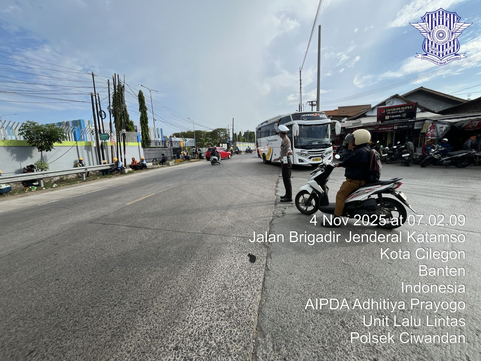 Cilegon – Berikan Pelayanan Pagi Kepada Masyarakat Personil Polsek Ciwandan Polres Cilegon Polda Banten melaksanakan pengaturan di titik kepadatan Arus Lalu-lintas Yang Ada Di daerah Hukum Polsek Ciwandan, Selasa (04/11/2025).