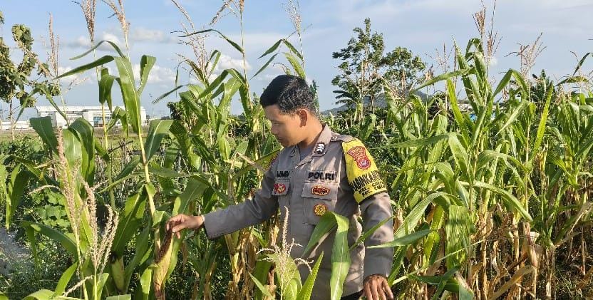 Pada kesempatan tersebut personil bhabinkamtibmas polsek Cibeber Polres Cilegon Polda Banten meninjau langsung lahan pertanian Jagung milik warga Binaan Lingkungan kelurahan Karang Asem Kec. Cibeber.