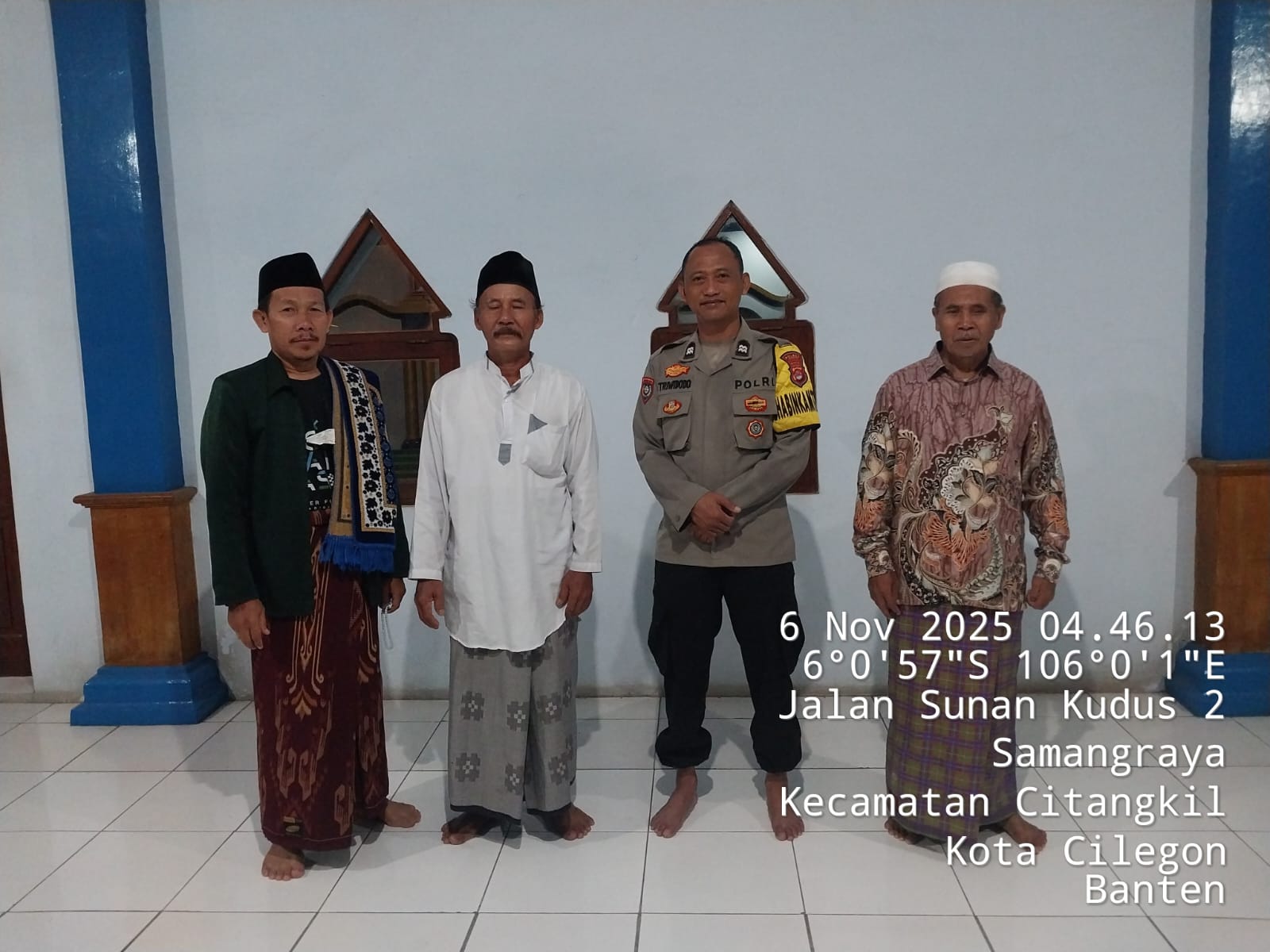 Cilegon – Bhabinkamtibmas Polsek Ciwandan Polres Cilegon Polda Banten menggelar kegiatan Pembinaan Rohani dengan Sholat subuh keliling di Masjid Yang ada Di Daerah hukum Polsek Ciwandan Polres Cilegon Polda Banten, Kamis (06/11/2025).