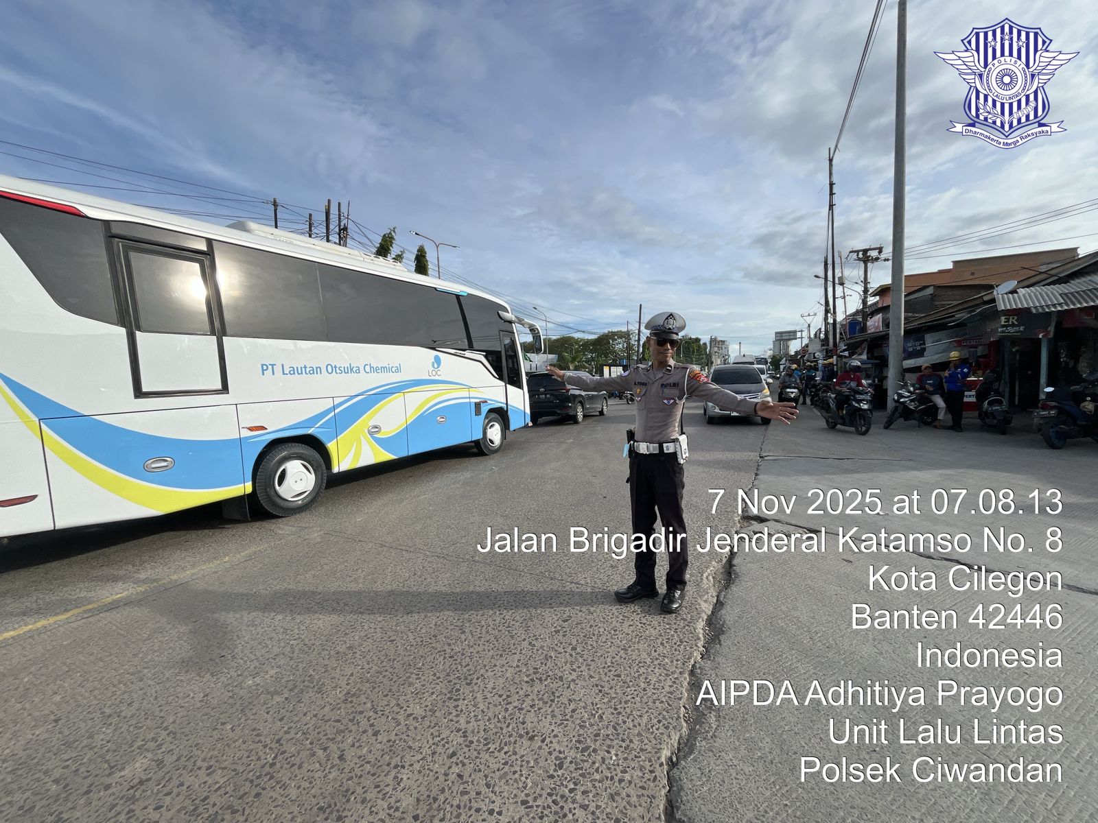 Cilegon – Berikan Pelayanan Pagi Kepada Masyarakat Personil Polsek Ciwandan Polres Cilegon Polda Banten melaksanakan pengaturan di titik kepadatan Arus Lalu-lintas Yang Ada Di daerah Hukum Polsek Ciwandan, Jum’at (07/11/2025).
