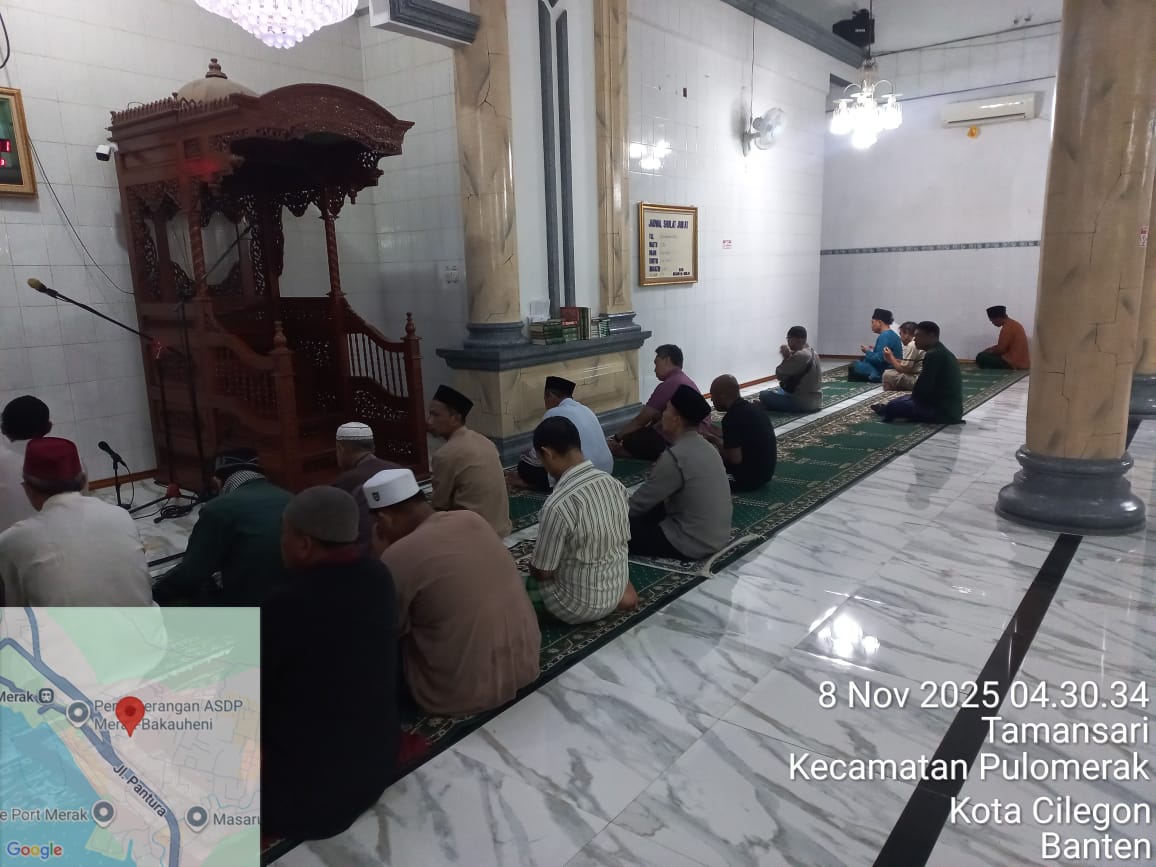 Cilegon – Personil Kskp Merak Polres Cilegon Polda Banten menggelar kegiatan Pembinaan Rohani dengan shalat subuh keliling di Masjid Yang ada Di Daerah hukum Polsek Kp Merak Polres Cilegon Polda Banten, Sabtu (08/11/2025).