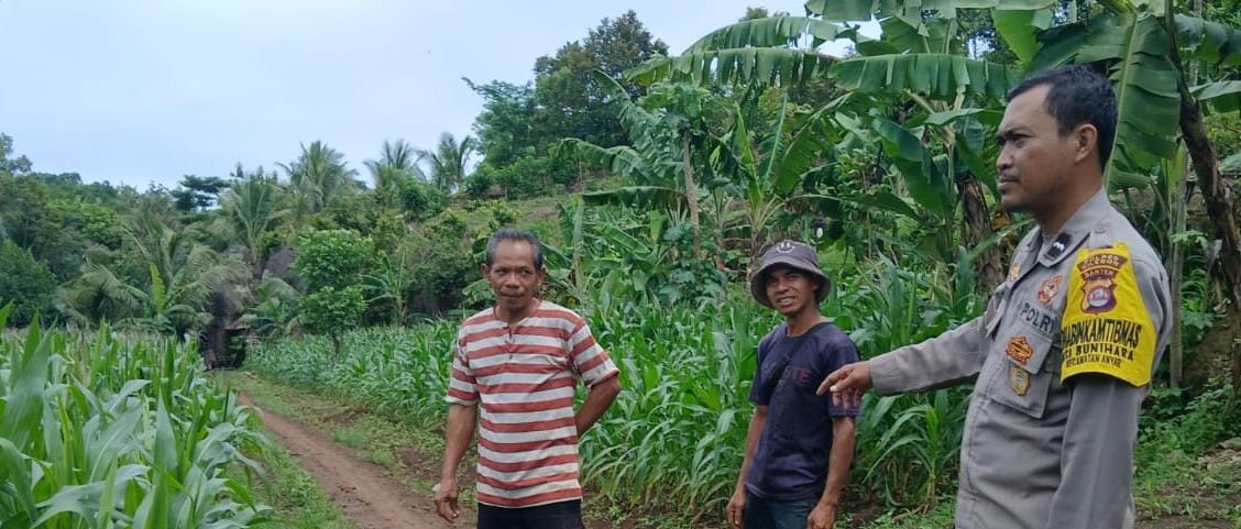 Polsek Anyar dan Poktan Cek Tanaman Jagung di Wilayah Bersama