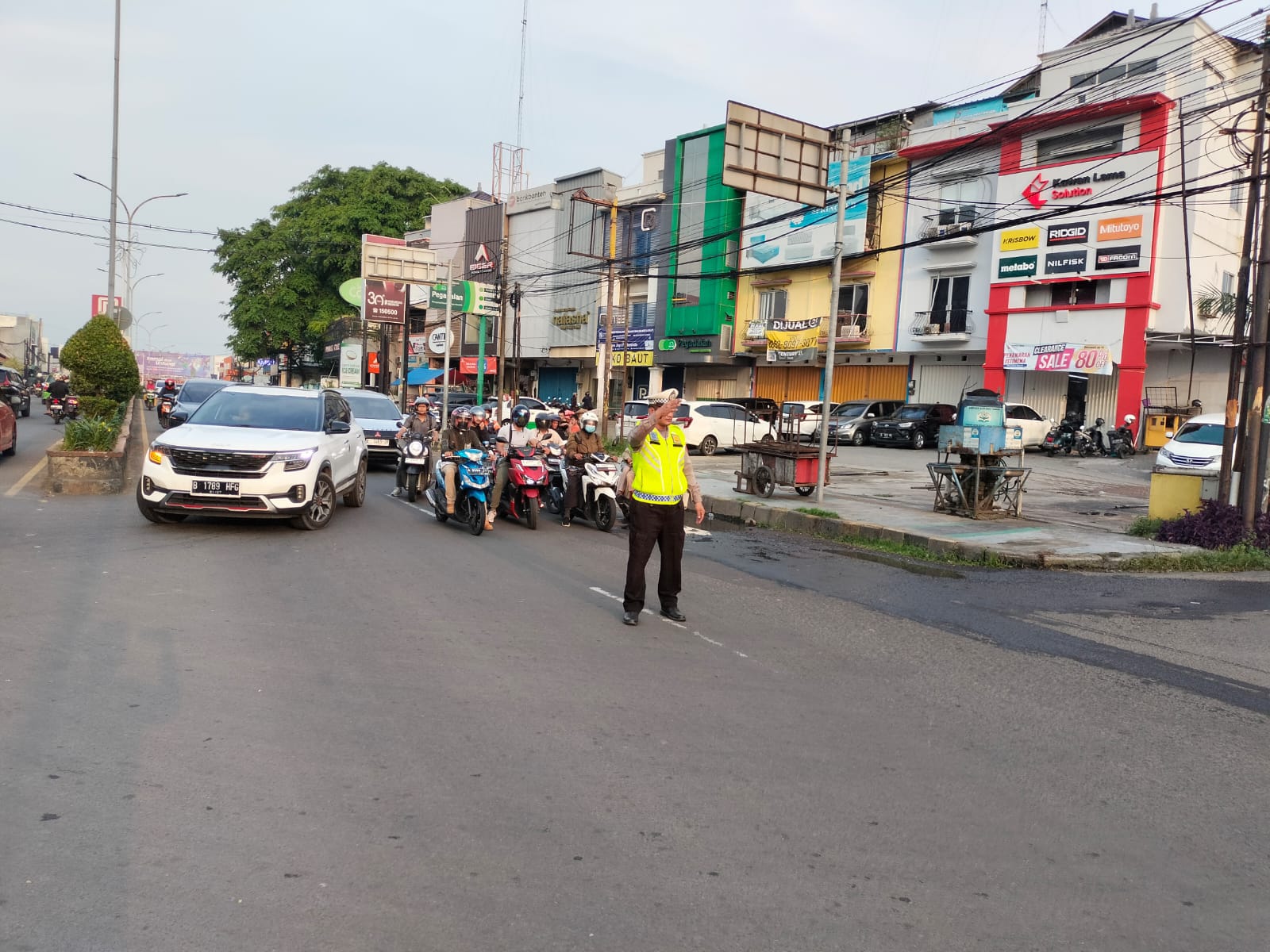 Cegah Kemacetan, Unit Lantas Polsek Cilegon Lakukan Pengaturan Arus Lalu Lintas Pagi Hari
