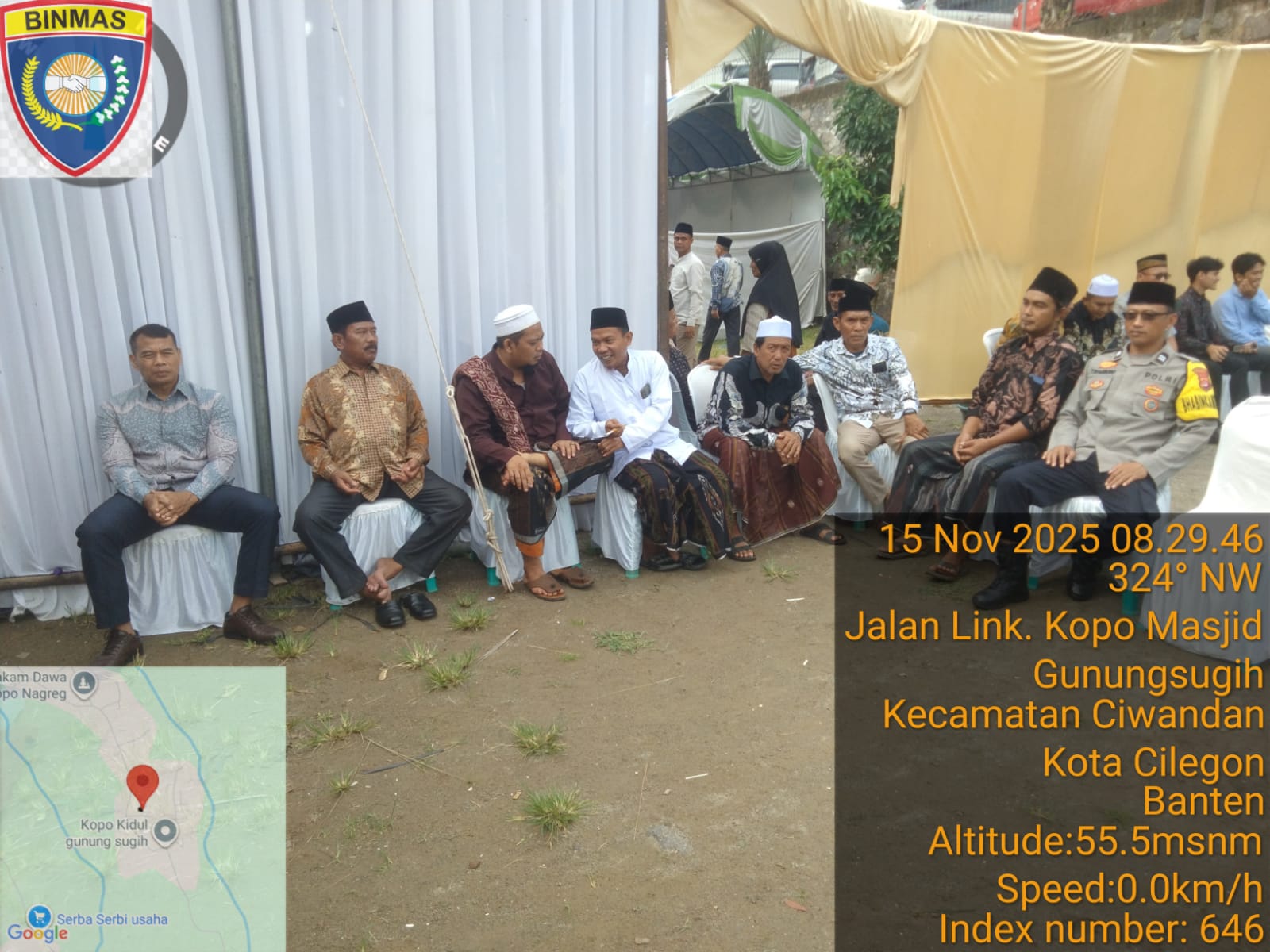 Cilegon - Bhabinkamtibmas Polsek Ciwandan Polres Cilegon Polda Banten melaksanakan Kegiatan Kondangan/Undangan ini bertujuan untuk memastikan acara berlangsung dengan aman dan tertib, serta memberikan rasa aman kepada warga yang menghadiri resepsi pernikahan tersebut, Sabtu (15/11/2025).