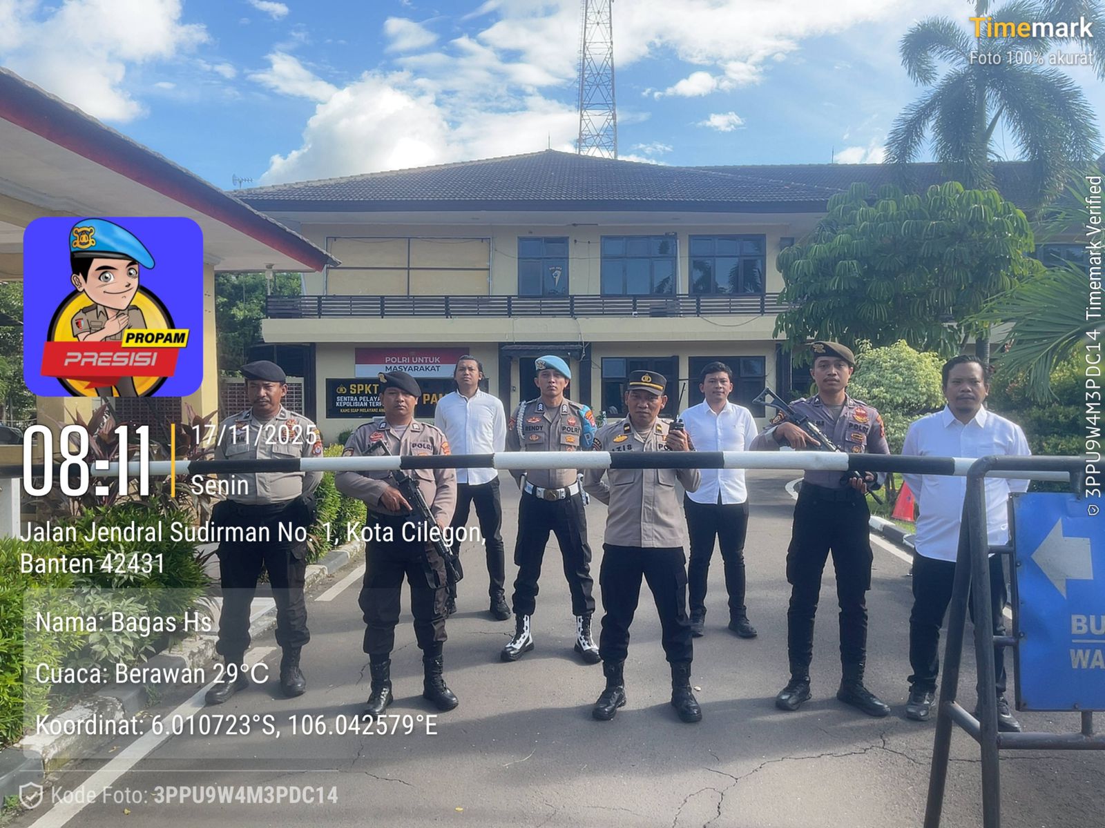Cilegon, personel Satreskrim Polres Cilegon Polda Banten melaksanakan piket di penjagaan pintu masuk Polres Cilegon Polda Banten untuk memastikan mako Polres Cilegon dalam keadaan aman dan nyaman dalam melayani Masyarakat tanpa adanya gangguan kejahatan. Senin (17/11/2025).
