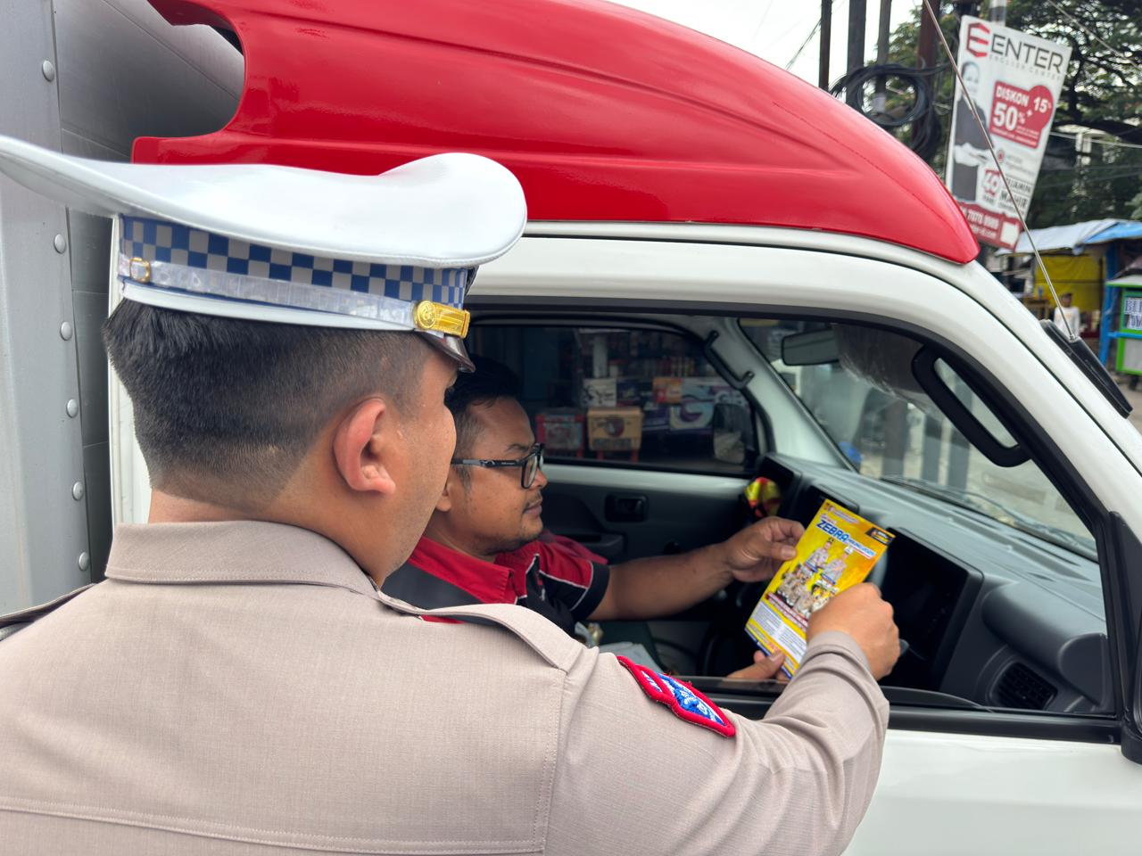 Selain penindakan, petugas juga membagikan leaflet imbauan keselamatan, memberikan sosialisasi langsung kepada pengendara, serta mengingatkan pentingnya mematuhi aturan demi mencegah kecelakaan lalu lintas.