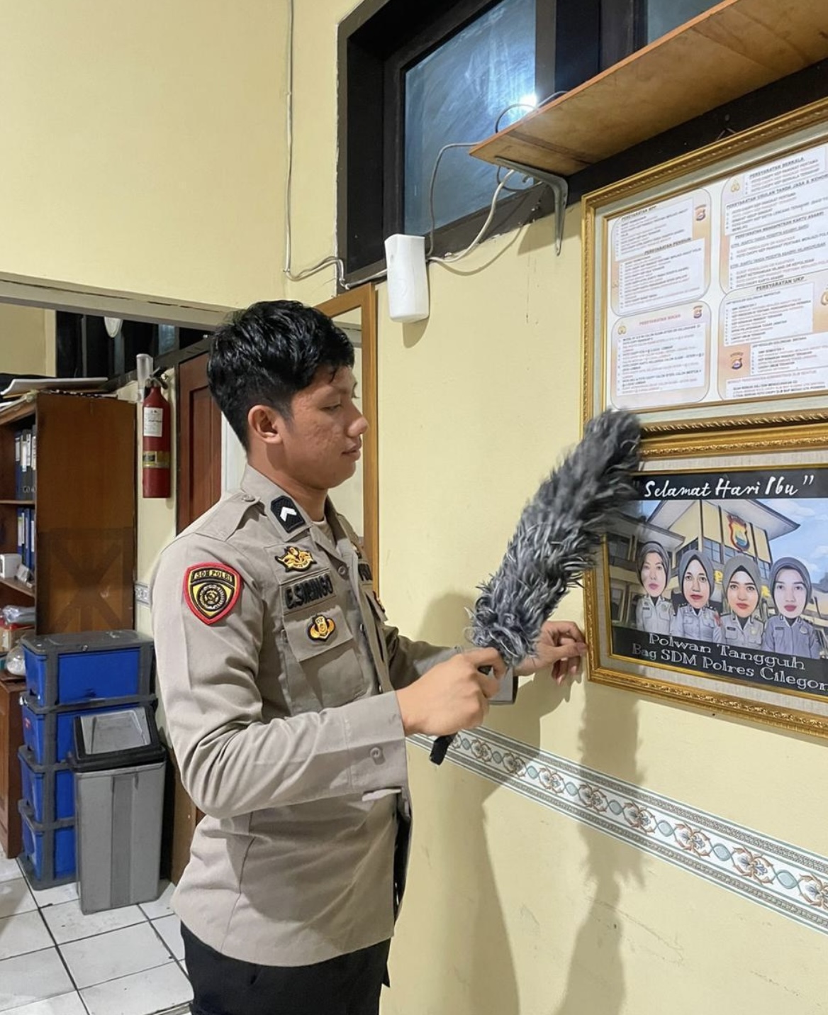 Anggota Bag SDM Polres Cilegon, Aktif dalam rutinittas membersihkan ruangan kerja setiap hari