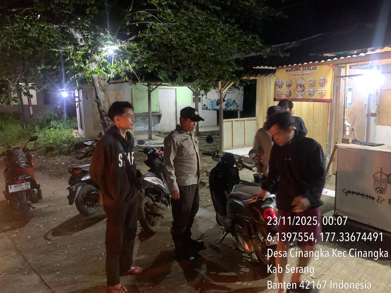 *Polres Cilegon* – Dalam Rangka Pencegahan Kejahatan Jalanan dan Memelihara situasi keamanan dan menjaga serta memberikan rasa aman dan nyaman di masyarakat,Salah satu upaya untuk mewujudkan hal tersebut sebagaimana yang dilakukan oleh Personil Polsek Cinangka Polres Cilegon Polda Banten melaksanakan giat patroli blue light malam hari hingga menjelang pagi, Minggu (23/11/2025).