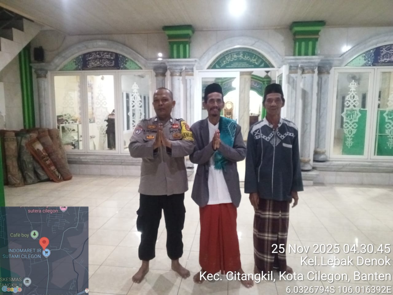Cilegon – Bhabinkamtibmas Polsek Ciwandan Polres Cilegon Polda Banten menggelar kegiatan Pembinaan Rohani dengan Sholat subuh keliling di Masjid Yang ada Di Daerah hukum Polsek Ciwandan Polres Cilegon Polda Banten, Senin (24/11/2025).