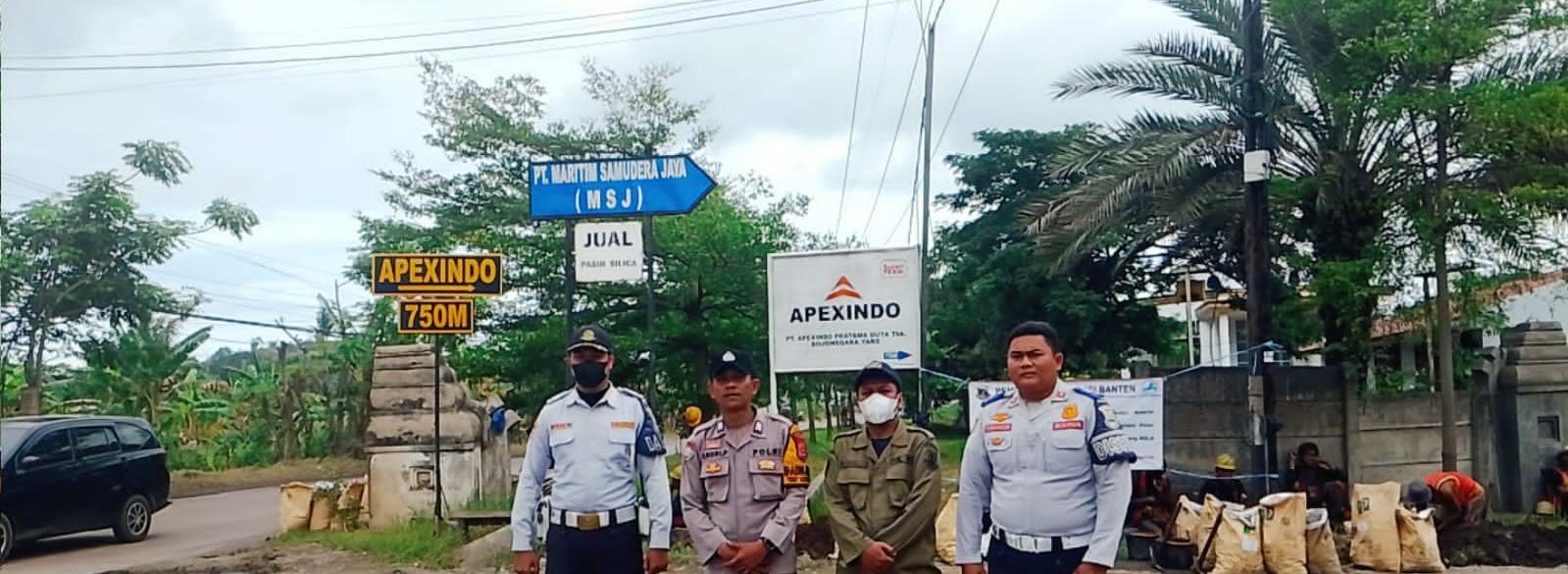 Laksanakan Strong Poin Di Sore Hari, Bhabinkamtibmas ,Dishub Dan Satpol Pp Laksanakan Giat Pengaturan Lalin Di Jalan Raya PT Apexindo Bojonegara