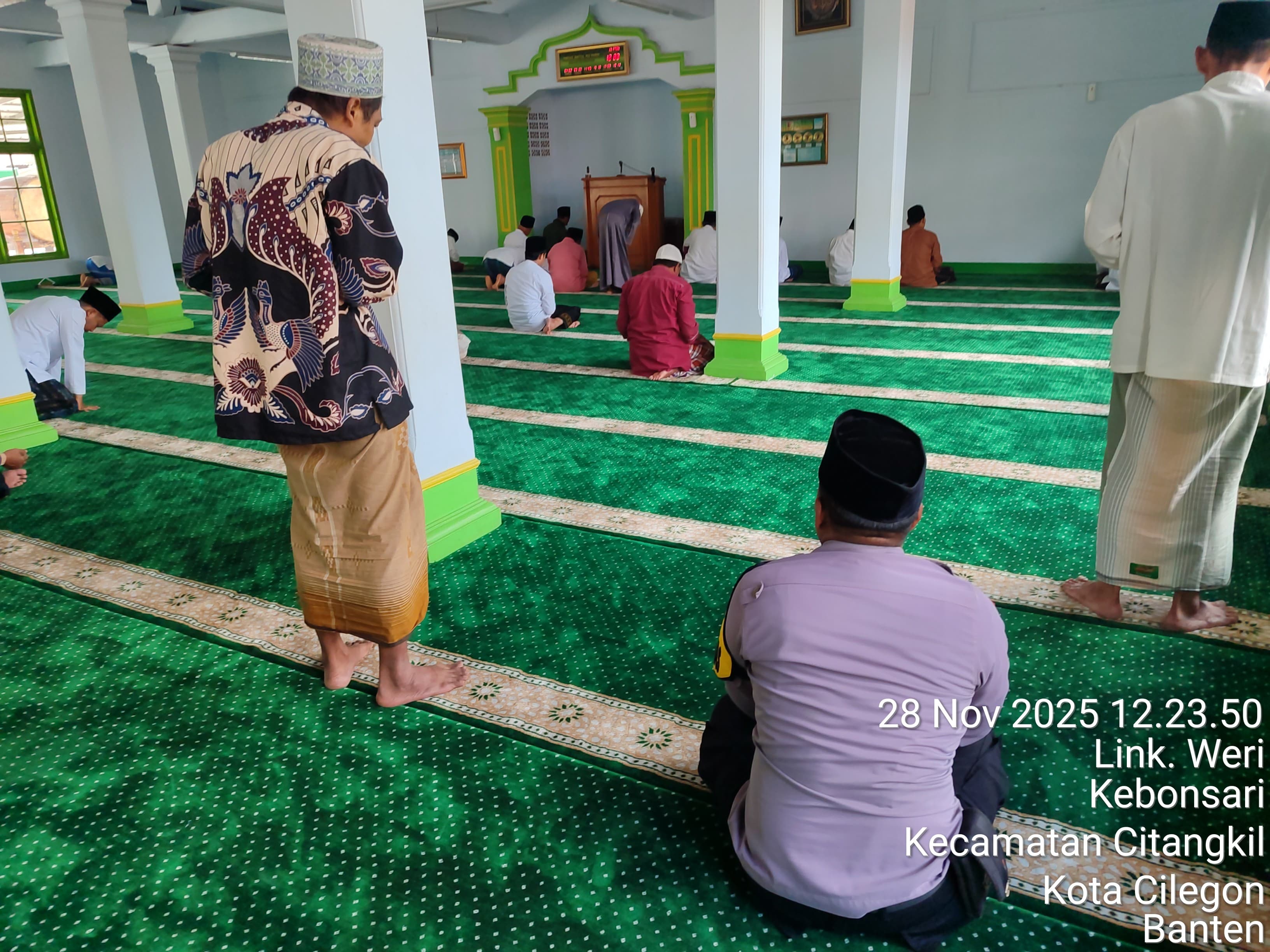 Cilegon - Dalam Rangka Implementasi Program Kapolda Banten Yaitu Sholat Jum’at Keliling Dan Berjama’ah Serta Memakmurkan Masjid Bhabinkamtibmas Polsek Ciwandan Polres Cilegon Polda Banten Sholat Berjama’ah dan Bersilaturahmi Bersama masyarakat sebagai upaya meningkatkan Ukhuwah Islamiyah dalam menjalin silaturahmi dan membangun komunikasi yang baik,Jum’at (28/11/2025).
