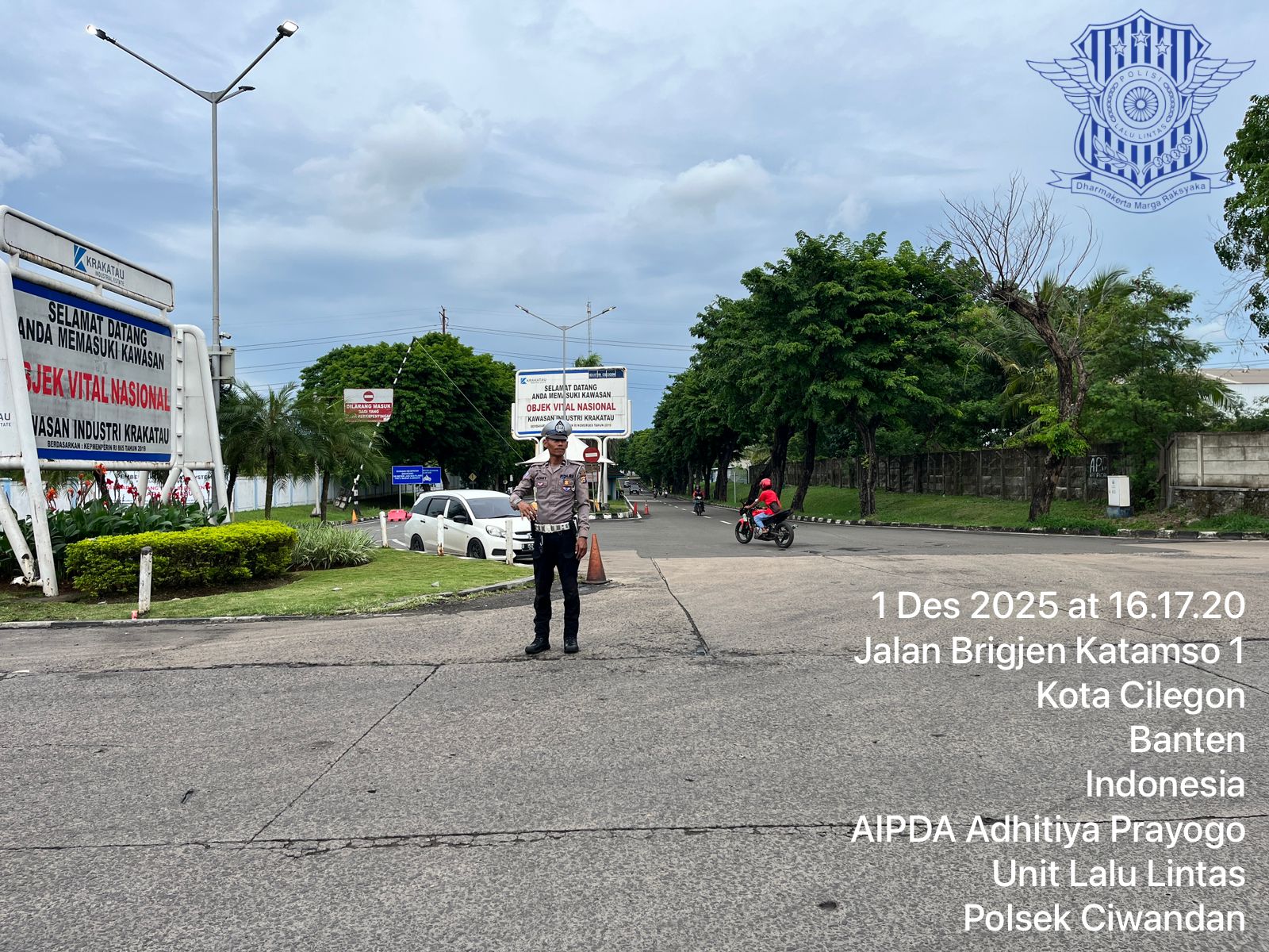 Cilegon - Tingginya mobilitas masyarakat pada jam-jam sibuk, tingkat kerawanan baik itu kemacetan ataupun kecelakaan pasti ada potensi, sehingga untuk mengantisipasi hal tersebut Personil Polsek Ciwandan Polres Cilegon Polda Banten Bhabinkamtibmas melaksanakan Strong Point pada sejumlah lokasi, Senin (01/12/2025).