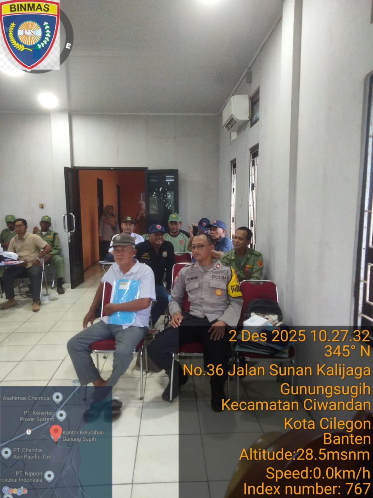Cilegon - Bhabinkamtibmas Kelurahan Gunung Sugih Polsek Ciwandan Polres Cikegon Polda Banten Menghadiri Dan Mengikuti kegiatan Pencegahan Penanggulangan Bencana Tingkat Kelurahan yang Bertempat di Aula Kelurahan Gunung Sugih Kecamatan Ciwandan Kota Cilegon, Selasa (02/12/2025).