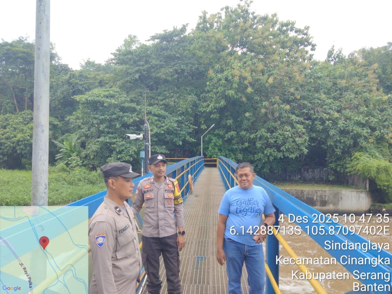 Piket Polsek Cinangka secara rutin melakukan pengecekan kondisi sungai dan berkoordinasi dengan pihak terkait untuk memantau perkembangan debit air. Pemantauan ini juga melibatkan partisipasi aktif dari masyarakat setempat.