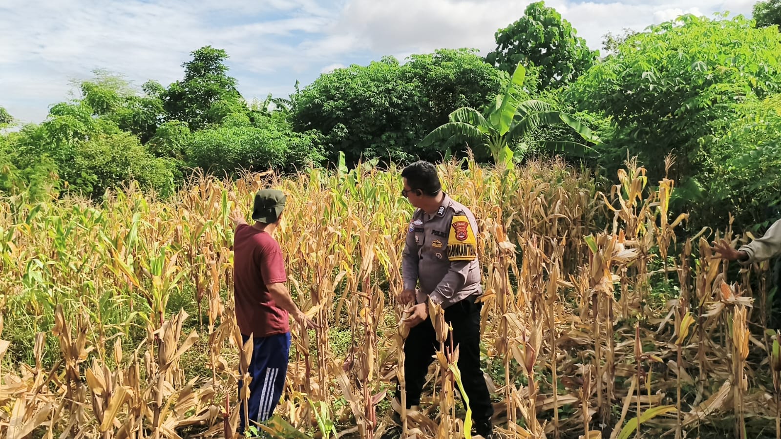 Cilegon - Polsek Ciwandan Polres Cilegon Polda Banten mendukung kegiatan panen jagung Hibrida hasil penanaman Kelompok Tani Kosambi di Kelurahan Samangraya Kecamatan Citqngkil, Kota Cilegon, Sabtu (13/12/2025).