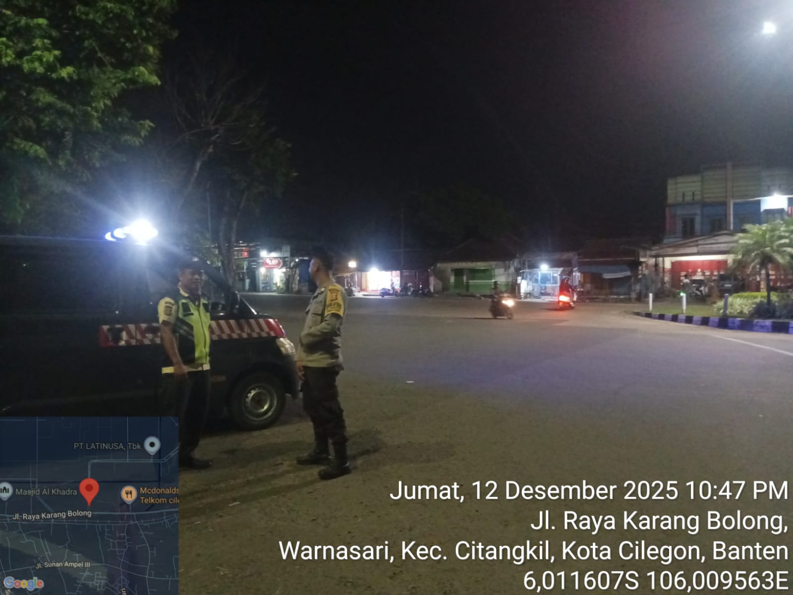 Cilegon – Dalam Rangka Pencegahan Street Crime dan Memelihara situasi keamanan dan ketertiban serta memberikan rasa aman dan nyaman di masyarakat,Salah satu upaya untuk mewujudkan hal tersebut sebagaimana yang dilakukan oleh Personil Polsek Ciwandan Polres Cilegon Polda Banten melaksanakan giat patroli blue light malam hari hingga menjelang pagi, Sabtu (13/12/2025).