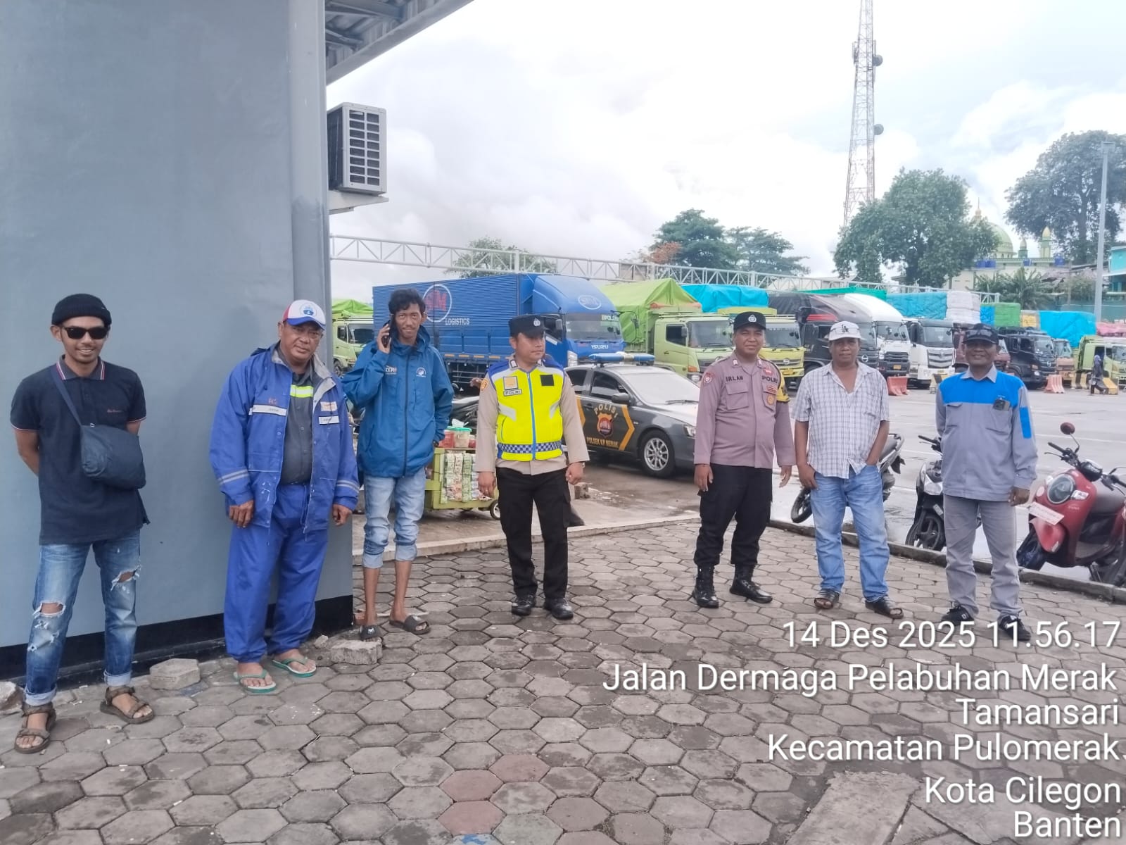 Cilegon - Personel Polsek Kskp Merak Polres Cilegon Polda Banten melaksanakan sambang dan patroli kawasan pelabuhan merak dalam rangka menjaga Harkamtibmas di Kawasan Pelabuhan Merak, Minggu (14/12/2025).
