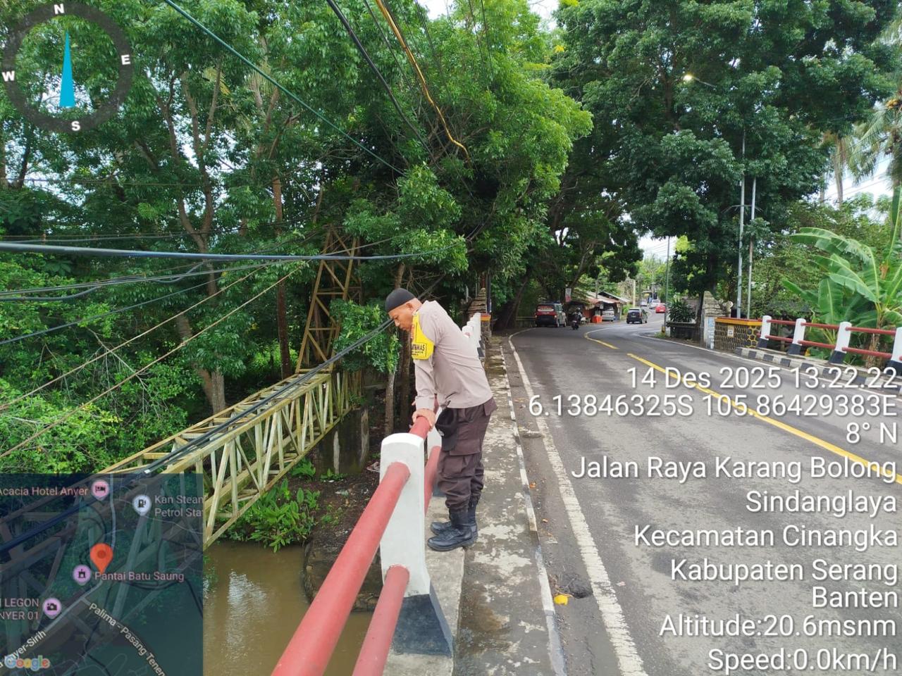 Piket Polsek Cinangka secara rutin melakukan pengecekan kondisi sungai dan berkoordinasi dengan pihak terkait untuk memantau perkembangan debit air. Pemantauan ini juga melibatkan partisipasi aktif dari masyarakat setempat.