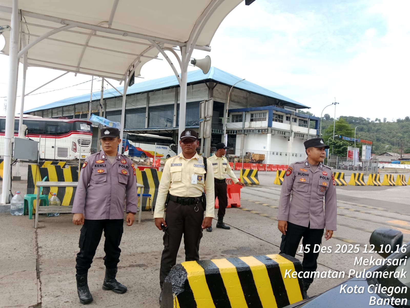 Cilegon - Personel Polsek Kskp Merak Polres Cilegon Polda Banten melaksanakan sambang dan patroli kawasan pelabuhan merak dalam rangka menjaga Harkamtibmas di Kawasan Pelabuhan Merak, Senin (15/12/2025).