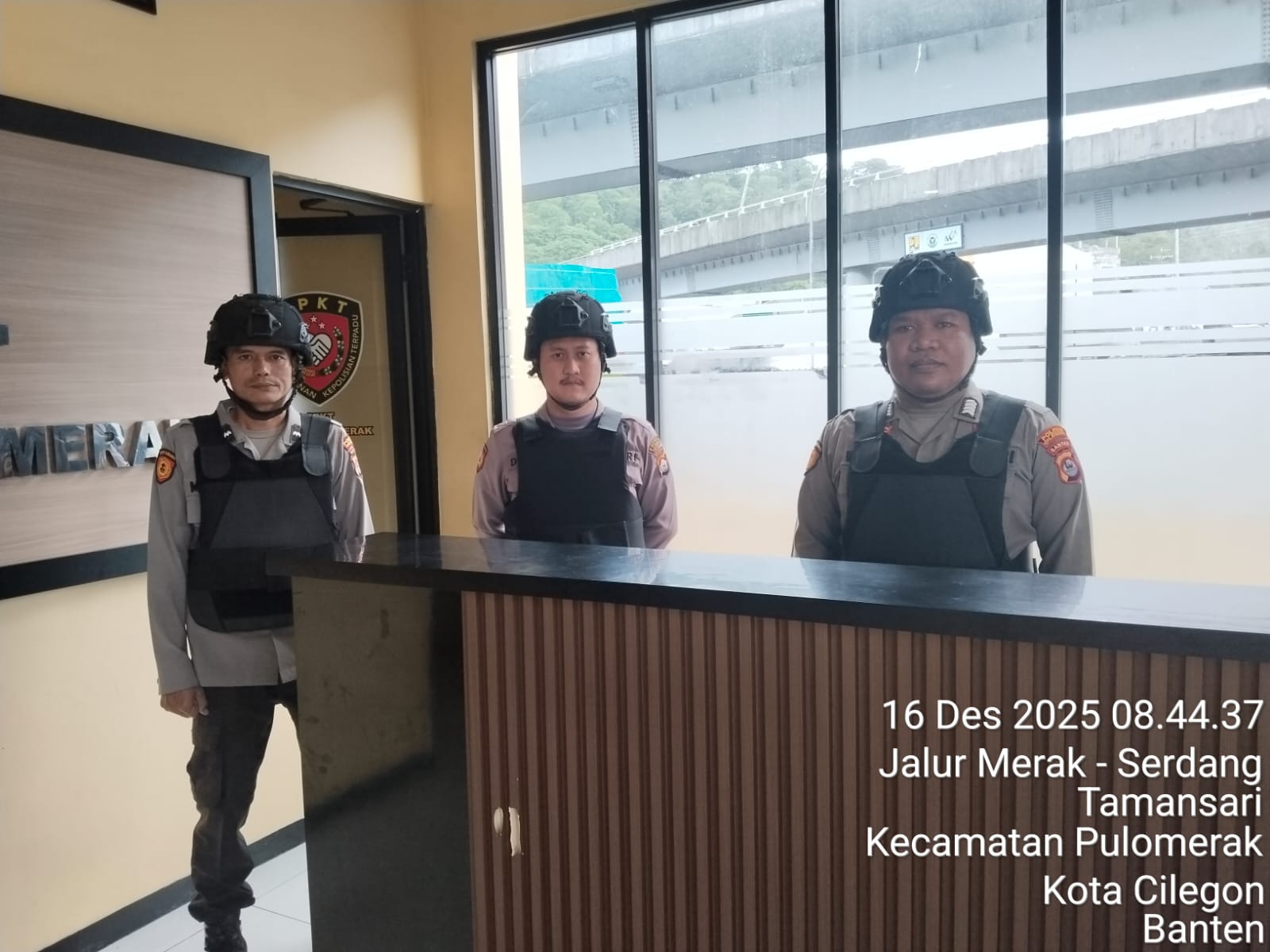 Cilegon - Personel piket jaga Polsek Kskp Merak Polres Cilgon Polda Banten melaksanakan siaga 1 Polsek pelaksanaan Sispam Mako oleh piket siaga dipimpin oleh Kspk Polsek Kskpy Merak Polres Cilegon Polda Banten, Selasa (16/12/2025).