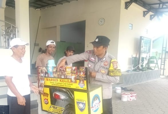 Bhabinkamtibmas Kelurahan Purwakarta, Bripka Nugraha, menggelar kegiatan "ngopi santai" bersama warga sambil keliling warung kopi dan warung belanja (warbeling) di wilayahnya