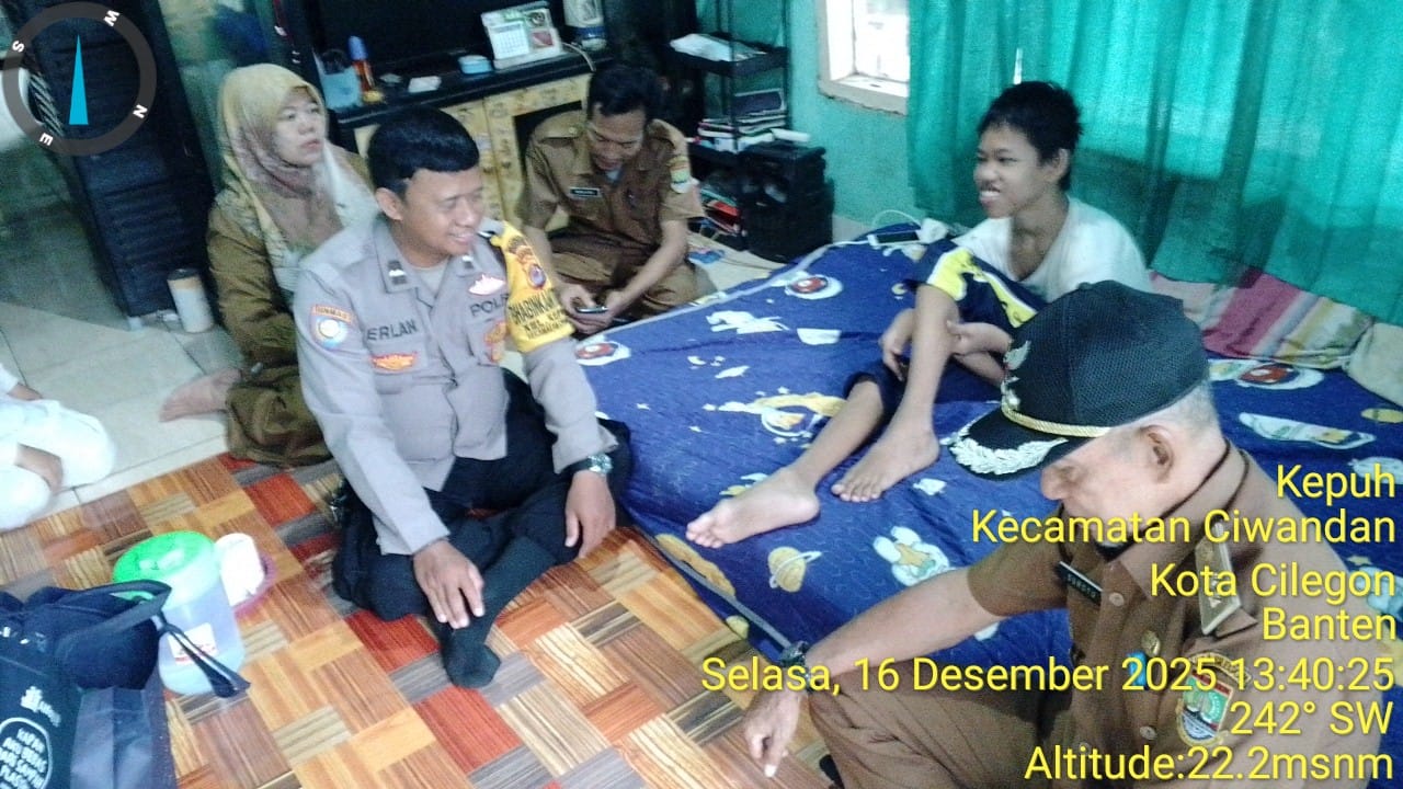 Cilegon - Bhabinkamtibmas Kel. Kepuh, AIPDA MERE ERLANSYAH, bersama Lurah Kepuh, membesuk anak yang sakit, Miftahul Hilmi, di Link. Rombongan RT. 01/01 Kel. Kepuh Kec. Ciwandan, Selasa (16/12/2025).