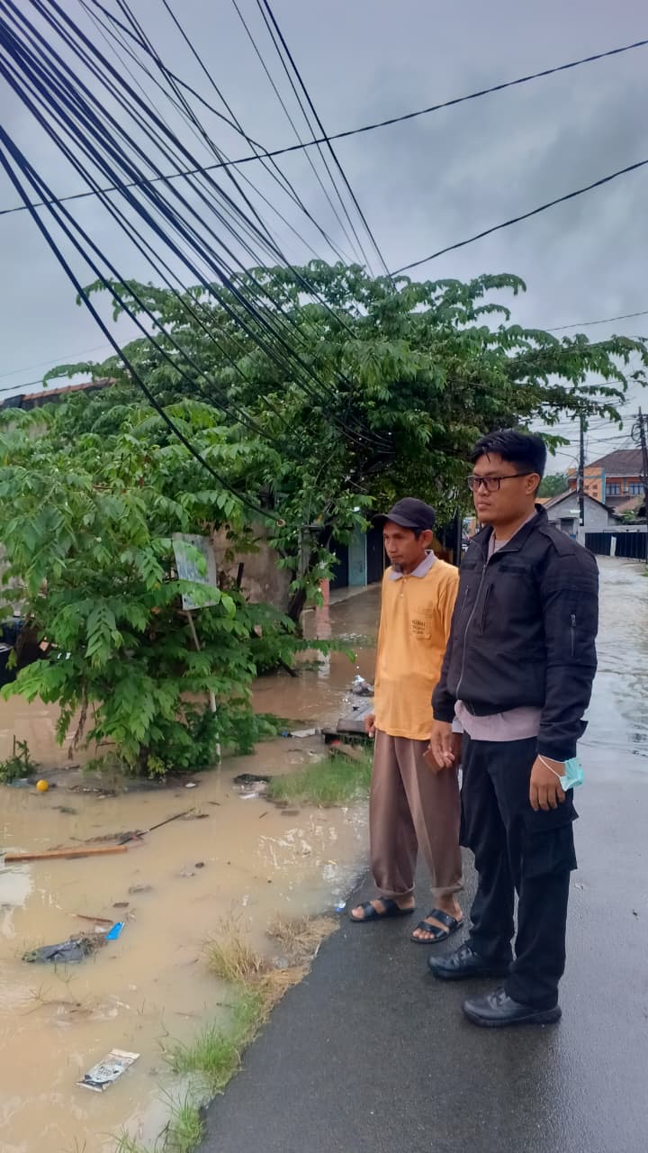 Personel Bhabinkamtibmas Polsek Purwakarta melakukan patroli dan pemantauan menyeluruh di wilayah hukumnya setelah hujan deras mengguyur kawasan tersebut pada hari ini