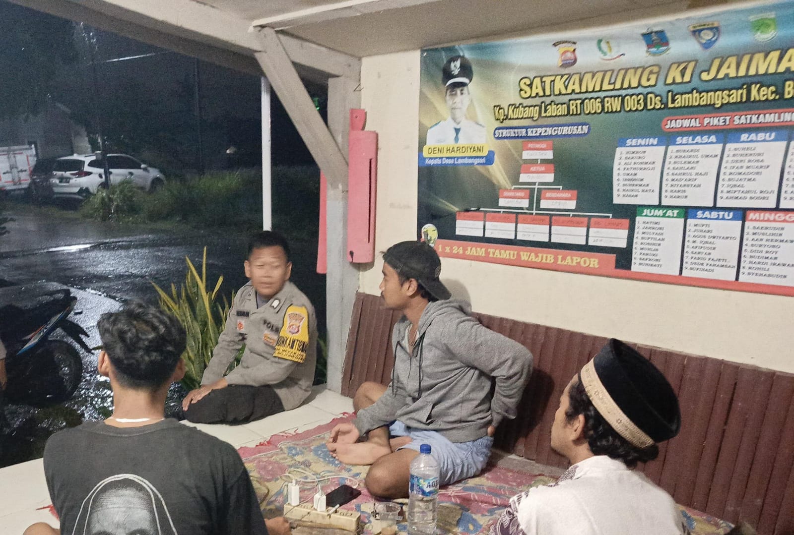 Dalam kesempatan tersebut, Brigpol Bagus dan Brigpol Chaeruman Bhabinkamtibmas memberikan himbauan petugas ronda agar tetap waspada terhadap potensi gangguan kamtibmas, seperti pencurian, perkelahian, ataupun gangguan lainnya. Ia juga mengingatkan agar selalu mencatat setiap aktivitas yang mencurigakan dan segera melapor ke pihak kepolisian Atau Ke Call Center Kepolisian 110 jika ditemukan hal-hal yang mencurigakan.Ujar Brigpol Bagus dan Brigpol Chaeruman