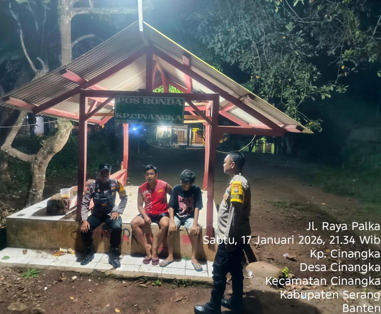 *Polres Cilegon* || Personel Bhabinkamtibmas Polsek Cinangka melaksanakan Program Komandan Wish Kapolda Banten RONDA SATKAMLING menyampaikan komunikasi dengan Petugas Siskamling agar berperan aktif dalam menciptakan Harkamtibmas yang aman dan Kondusif, Minggu (18/01/2026).