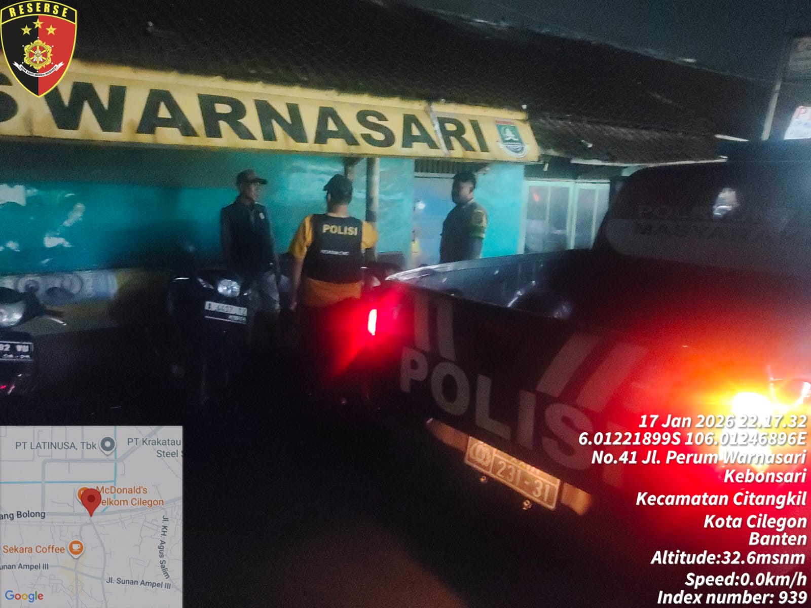 Cilegon - Polsek Ciwandan Polres Cilegon Polda Banten kembali menunjukkan komitmennya dalam menciptakan keamanan dan ketertiban masyarakat (kamtibmas) yang kondusif melalui Kegiatan Patroli Malam, Kegiatan ini dilakukan secara rutin dengan berkeliling di daerah hukum Polsek Ciwandan, Minggu (18/01/2026).