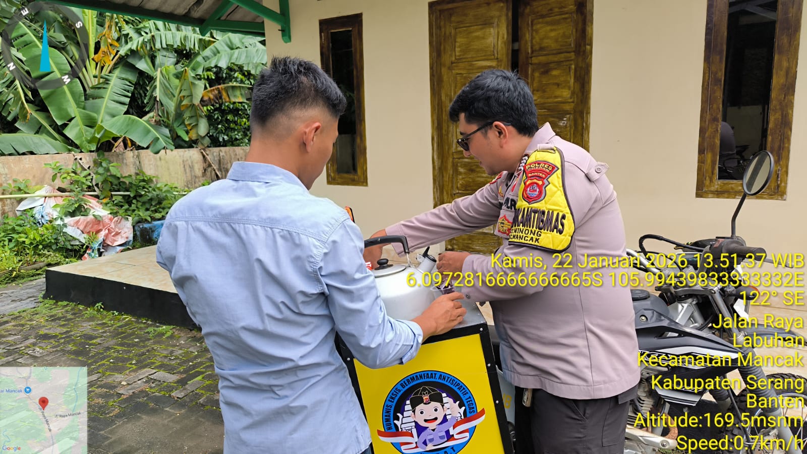 Kapolres Cilegon Polda Banten AKBP Dr. Martua Raja Taripar Laut Silitonga melalui Kapolsek Mancak  AKP ANDI AAS  MARIO Dan  Anggota Bhabinkamtibmas  BRIPKA ARIE SUFRIYADI, BRIGADIR ASEP WINDU SAPUTRA melaksanakan kegiatan sambang serta implementasi Commander Wish Kapolda Banten "WARBINLING" Warung Bhabinkamtibmas Keliling dan Program Commanderwish Kapolres Cilegon "TRENDING" dalam rangka menciptakan situasi aman dan kondusif di daerah hukum Polsek Mancak Polres Cilegon.