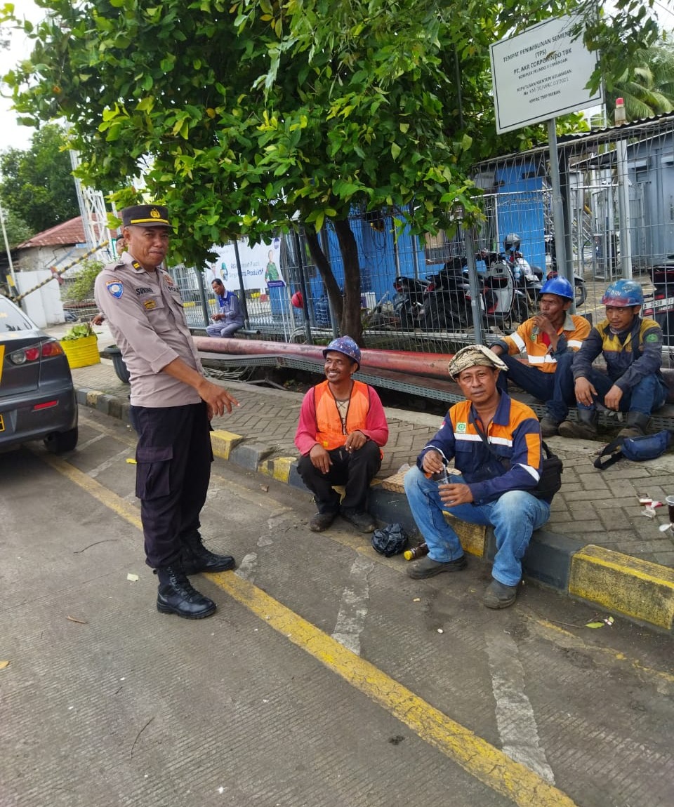 Bhabinkamtibmas Pelabuhan Polsek Kawasan Pelabuhan Banten berbincang dengan Buruh Pelabuhan