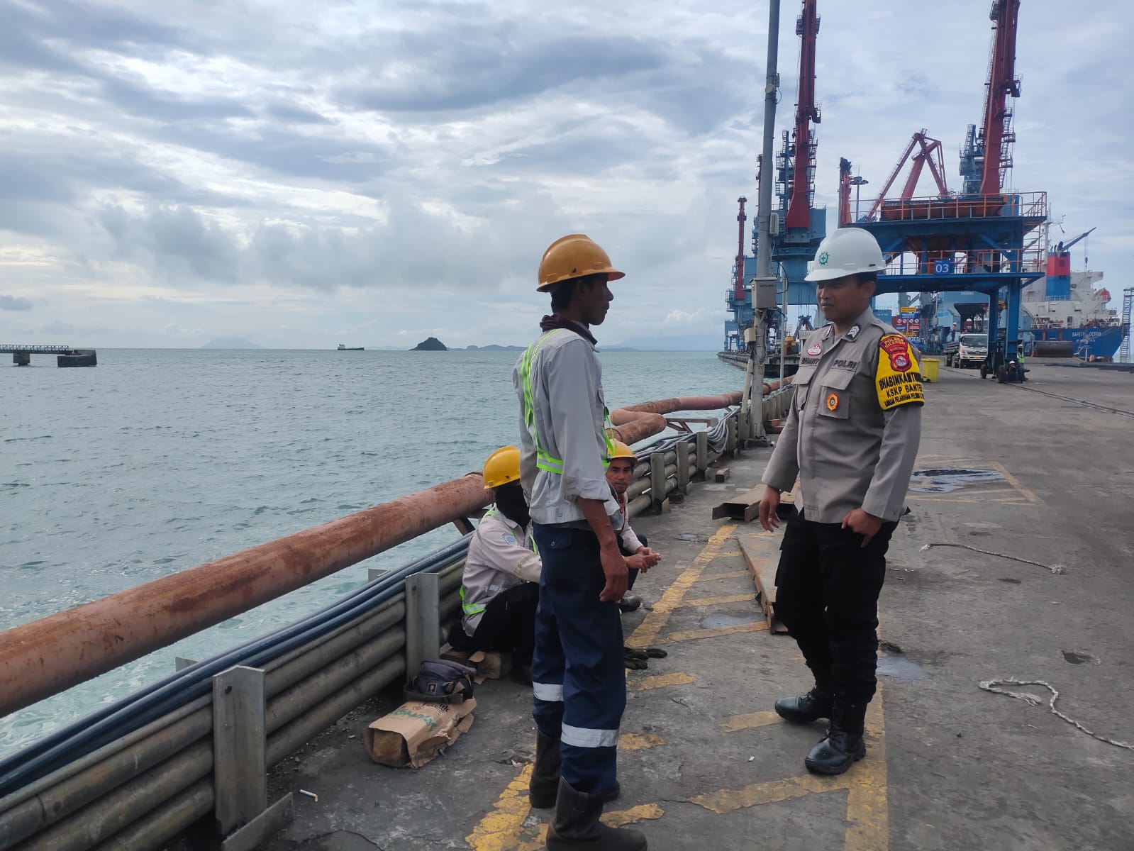Jalin Silaturahmi, Bhabinkamtibmas Pelabuhan Polsek KP Banten berbincang ke Buruh Pelabuhan