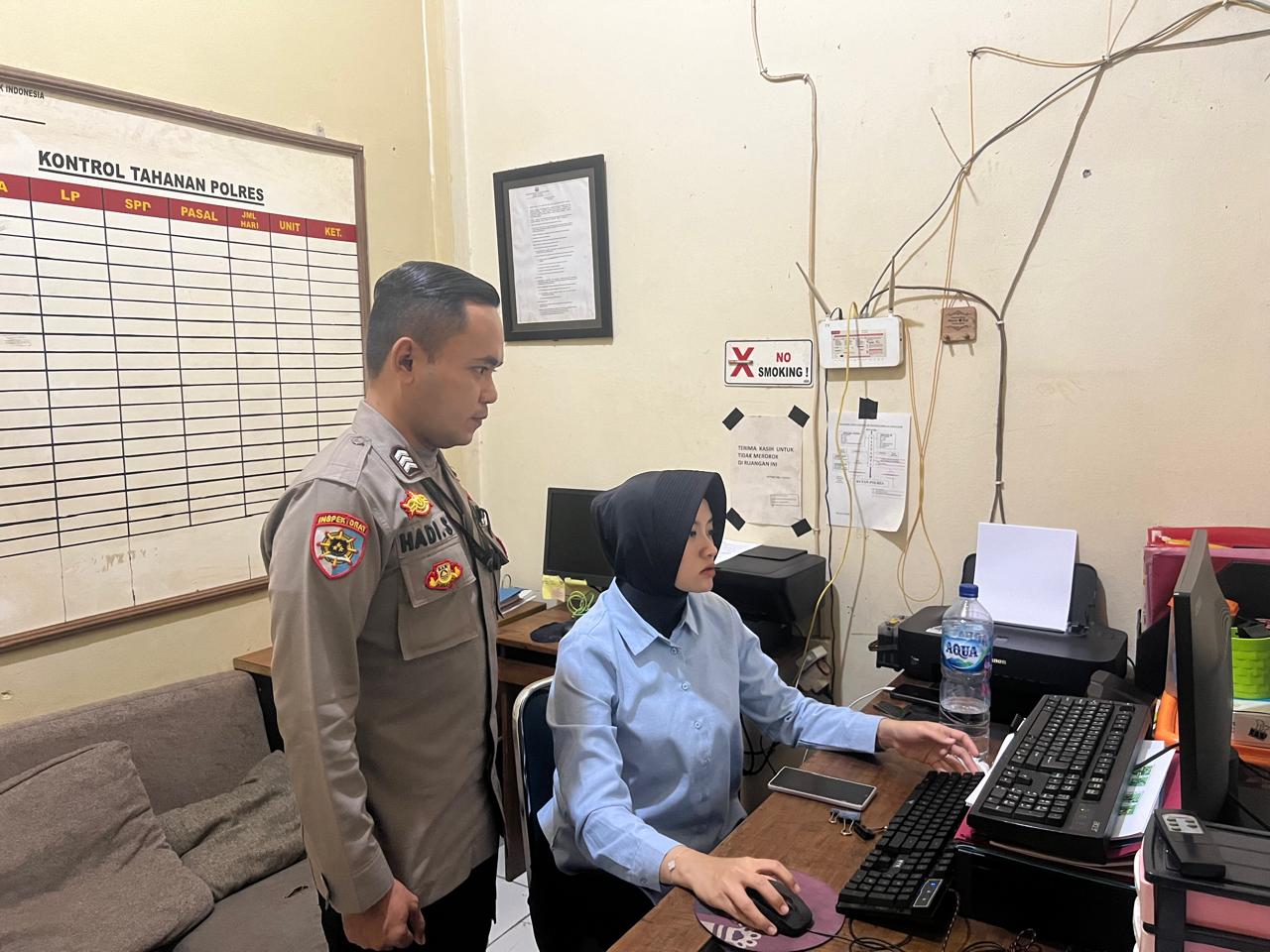 Brigadir HadI.S Personil Siwas Polres Cilegon Mengechek kinerja Sat Tahti Polres Cilegon Polda Banten