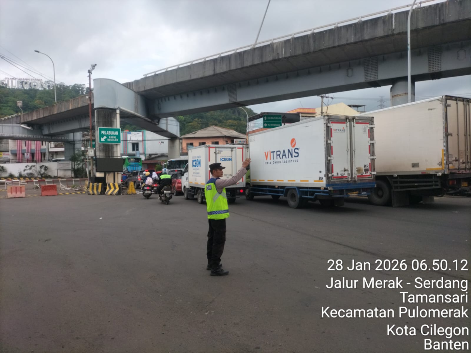 Cilegon - Dalam rangka peningkatan pelayanan prima kepada masyarakat, Kskp Merak Polres Cilegon Polda Banten melaksanakan pengaturan antrian R4 yang akan masuk ke Kapal Ferry di Pelabuhan Merak, Rabu (28/01/2026).