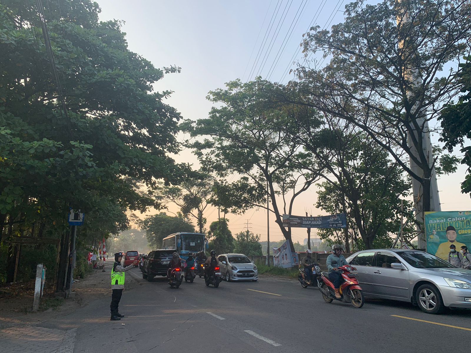 Cilegon,Polres Cilegon Polda Banten Pada Kamis /29/01/2026 Pukul 06.30 Wib, Personil Siwas Polres Cilegon, Aipda Emi Prasetyo melaksanakan kegiatan pengaturan arus lalu lintas di Jalur Protokol jalan utama Kota Cilegon tepat nya di jalur depan perumahan arga baja Pura Kota Cilegon.