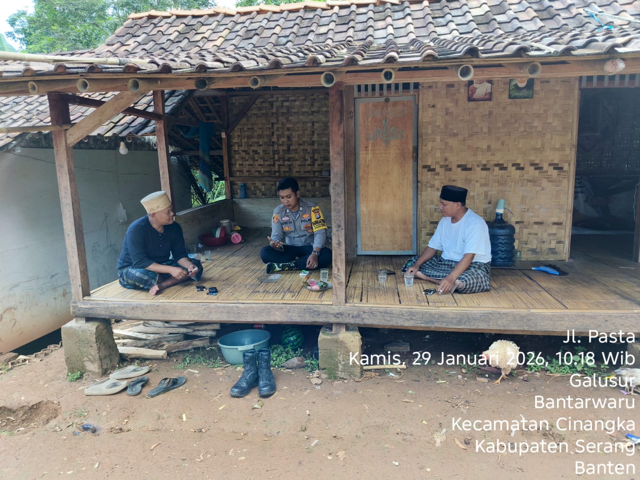 Cilegon – Polres Cilegon Polda Banten, Bhabinkamtibmas Desa Bantarwaru Kec. Cinangka Melaksanakan Patroli Dialogis dan Bersilaturahmi Bersama Tokoh Masyarakat di Kp. Galusur Desa Bantarwaru Kec. Cinangka, Kamis (29/01/2026).