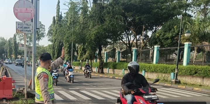 Dalam kondisi pagi hari yang biasanya mengalami kepadatan kendaraan, petugas kepolisian yang terpasang di lokasi bekerja secara terkoordinasi untuk mengarahkan arus lalu lintas, mencegah kemacetan, serta memastikan keamanan setiap pengguna jalan. Langkah ini menjadi bagian dari upaya rutin kepolisian dalam menjaga kelancaran lalu lintas dan keselamatan masyarakat.