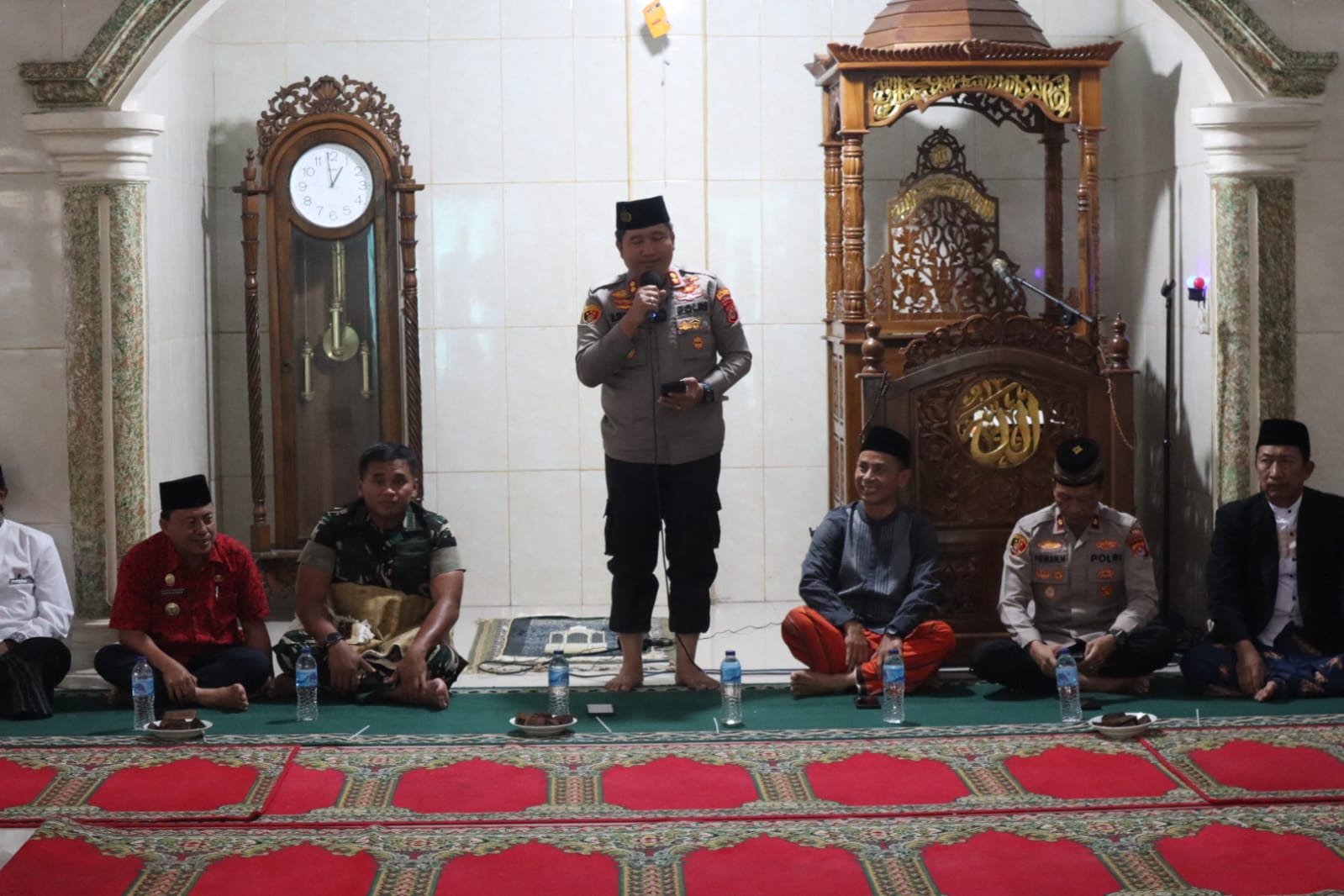 Dalam sambutannya, Camat Cilegon menyampaikan apresiasi atas kehadiran Kapolres Cilegon dan Dandim 0623/Cilegon di tengah masyarakat. Ia mengajak jamaah untuk memanfaatkan momentum tersebut sebagai sarana silaturahmi dan ruang konsultasi, khususnya bagi warga yang memiliki persoalan hukum maupun permasalahan sosial kemasyarakatan.