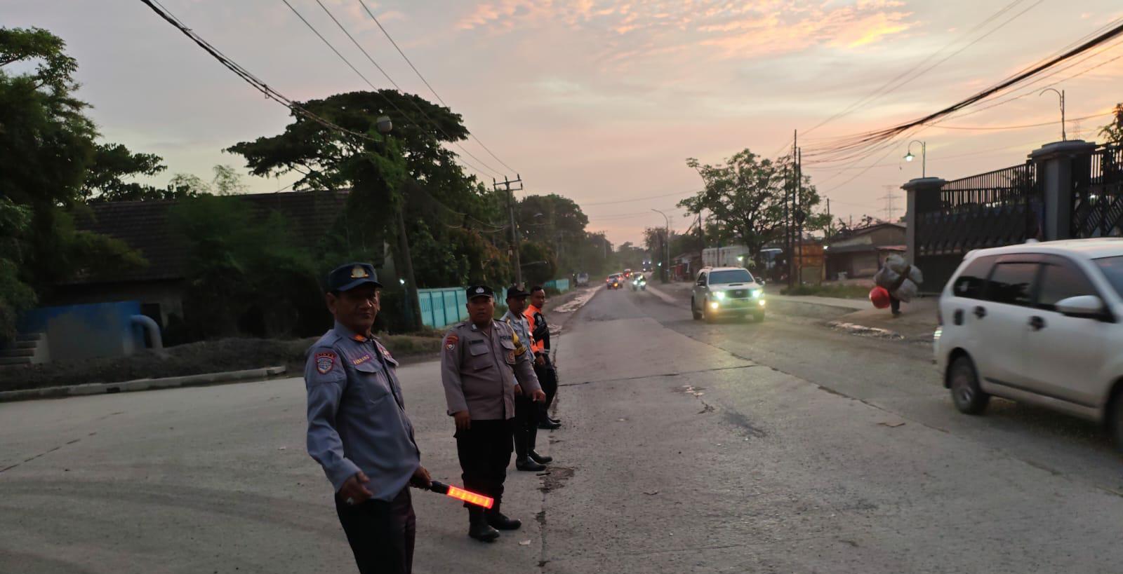 Demi Kelancaran Lalin, Ipda Gana Kanit Samapta dan Bripka Ghery Bhabinkamtibmas Laksanakan atur Lalin Di Simpang Jalan Raya Wadas Bojonegara