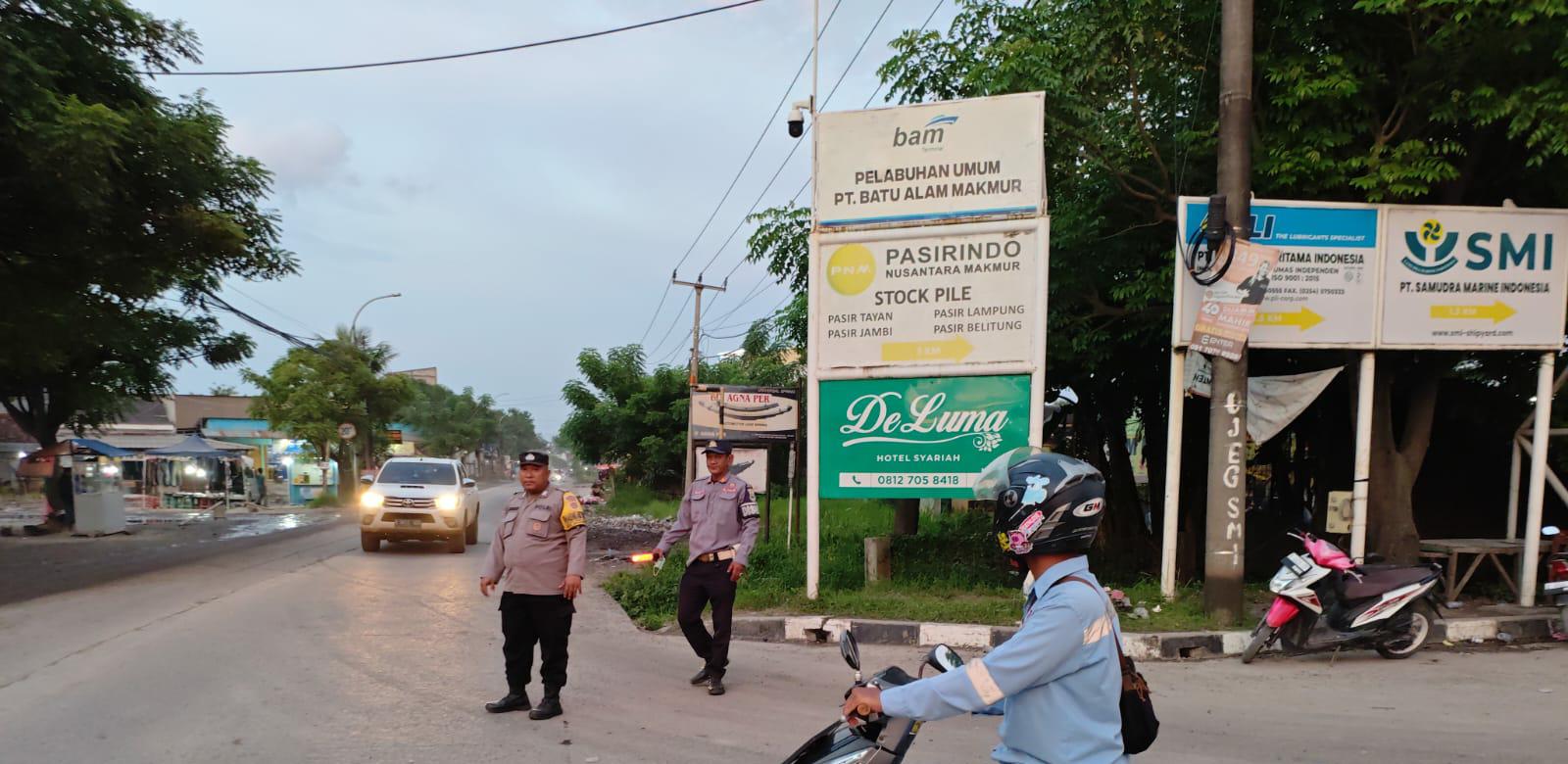 Lakukan Gatur Lalin Pagi,Ipda Gana Kanit Samapta dan Bripka Ghery Bhabinkamtibmas Lancarkan Arus Lalin Pagi Di Simpang Jalan Raya Wadas Bojonegara