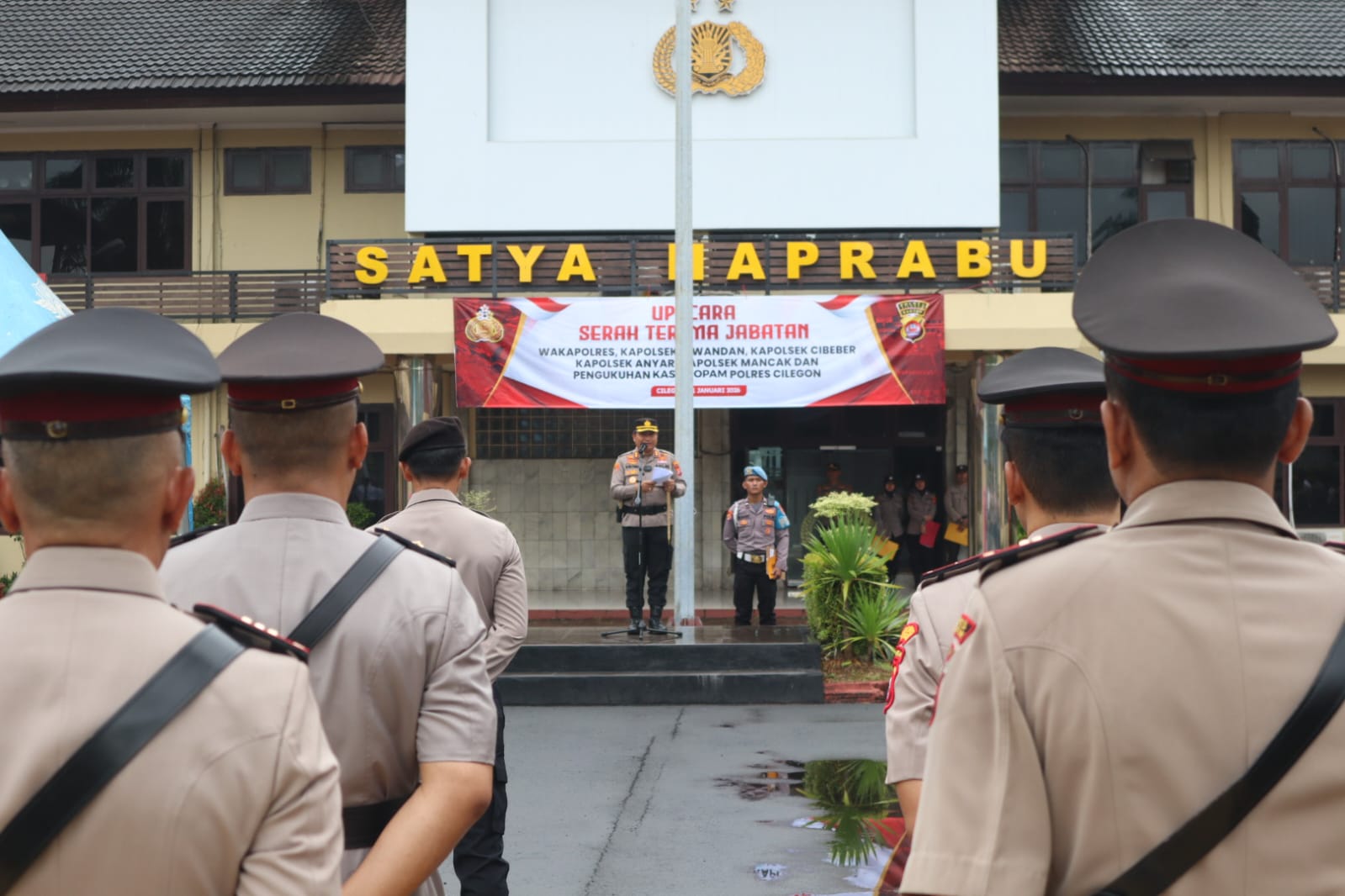 Serah terima jabatan tersebut dilaksanakan berdasarkan Surat Telegram Kapolda Banten Nomor ST/74/I/KEP/2026 tanggal 12 Januari 2026 tentang mutasi jabatan perwira di lingkungan Polda Banten. Adapun pejabat yang melaksanakan serah terima jabatan antara lain Wakapolres Cilegon dari Kompol Arief Nazarudin, S.H., S.I.K., M.H. kepada Kompol Moechmad Ridzky Salatun, S.I.K.; Kapolsek Ciwandan dari Kompol Andi Suherman, S.H., M.M. kepada Kompol Achri Yunito, S.I.K., M.H.; Kapolsek Cibeber dari AKP Atep Mulyana, S.H., M.Si. kepada IPTU Ibna Saputra, S.H., M.Si.; Kapolsek Anyer dari AKP Iwan Sofiyan, S.E., M.M. kepada IPTU Tubagus Zuaeni, S.H.; Kapolsek Mancak dari almarhum IPTU Khairul kepada IPTU Acum Sutarlia; serta pengukuhan AKP Heri Susanto, S.H., M.M. sebagai Kasi Propam Polres Cilegon.