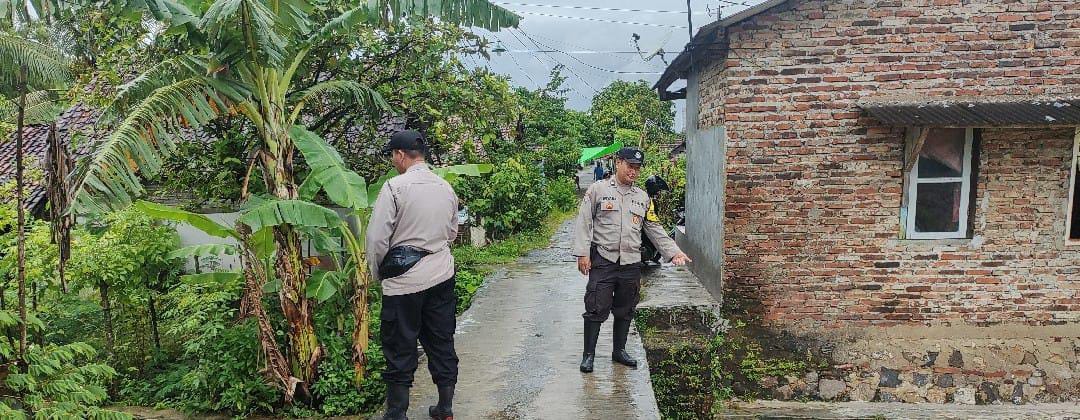 Personel Polsek Anyar Polres Cilegon Polda Banten melaksanakan Patroli kewilayahan mengecek debit air di Sungai pasca Hujan antisipasi banjir di wilayah Kec. Anyar, minggu (01/02).