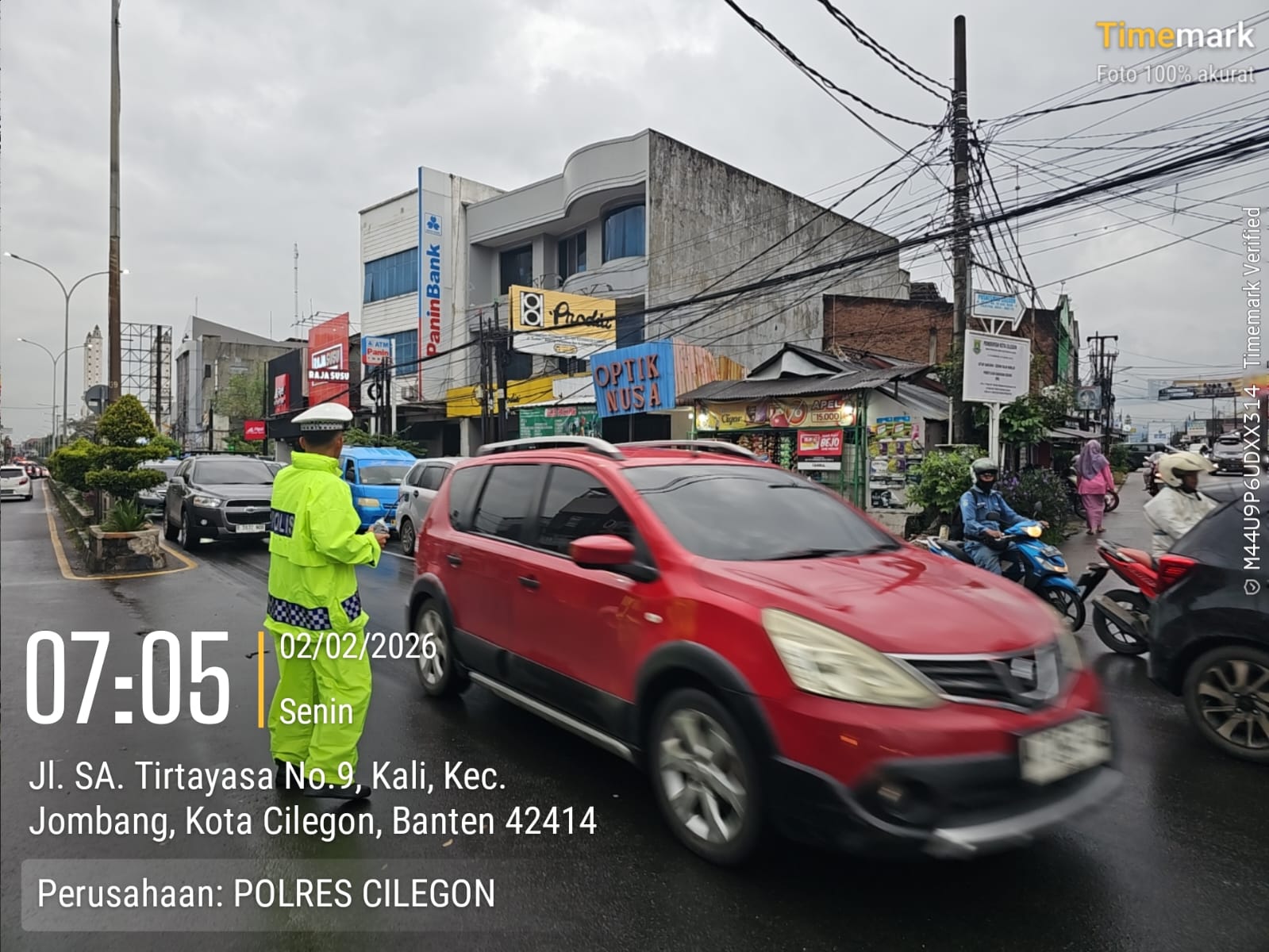 Cilegon – Polres Cilegon Polda Banten laksanakan Kegiatan Strong Point dalam rangka pengaturan arus lalu lintas dan kepadatan kendaraan pada jalur protokol/rawan macet di Darkum Polres Cilegon, Senin (02/02/2026).