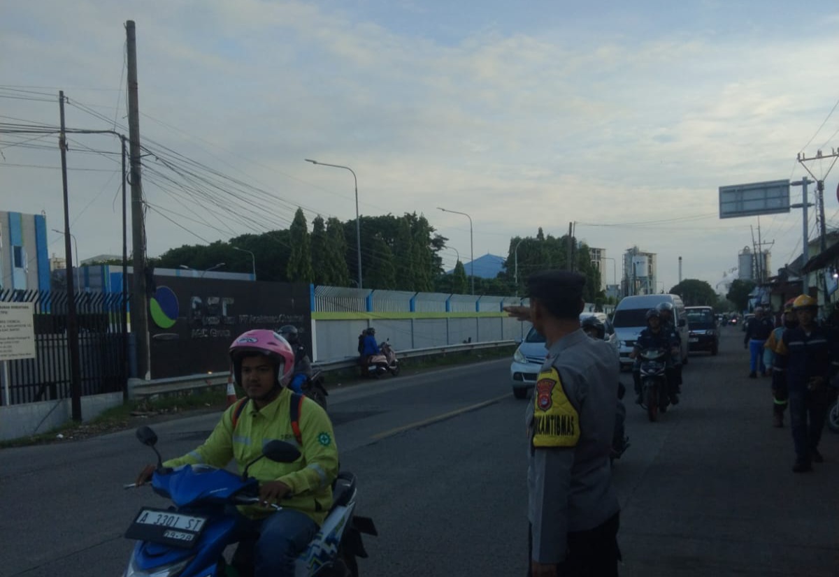 Cilegon - Dalam Mewujudkan Aksi Nyata Pelayanan Kepada Masyarakat,Personil Polsek Ciwandan Polres Cilegon Polda Banten Laksanakan Strong Poin Pengaturan Lalu-lintas Pagi,Selasa  (03/02/2026).