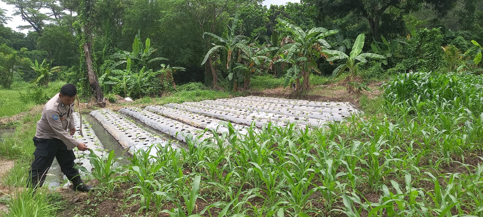 -Polres Cilegon- Polda Banten. Senin.9 Februari 2026 – Bhabinkamtibmas Polsek Purwakarta Polres Cilegon, Bripka Agustoni, melakukan pemeriksaan dan pendampingan langsung terhadap lahan pertanian jagung milik masyarakat di Kelurahan Kotabumi, Kecamatan Purwakarta, Kota Cilegon. Kegiatan ini bertujuan memastikan pertumbuhan tanaman jagung berjalan dengan baik dan tidak terinfeksi hama maupun penyakit yang dapat mengganggu produktivitas.