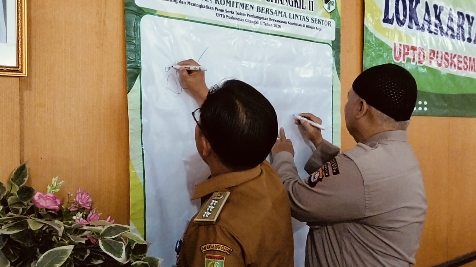 Cilegon - Wakapolsek Ciwandan Polres Cilegon Polda Banten AKP Uup M. Ma'ruf Bersama Personil Bhabinkamtibmas Polsek Ciwandan menghadiri kegiatan Lokakarya mini Lintas Sektor Bidang Kesehatan UPTD Puskesmas Citangkil 2 Tahun 2025 Di Aula Kantor Kecamatan Citangkil,Selasa (10/02/2026).