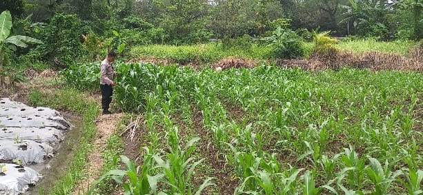 Dukung Program Ketahanan Pangan, Bripka Agustoni Tinjau Lahan Jagung Warga