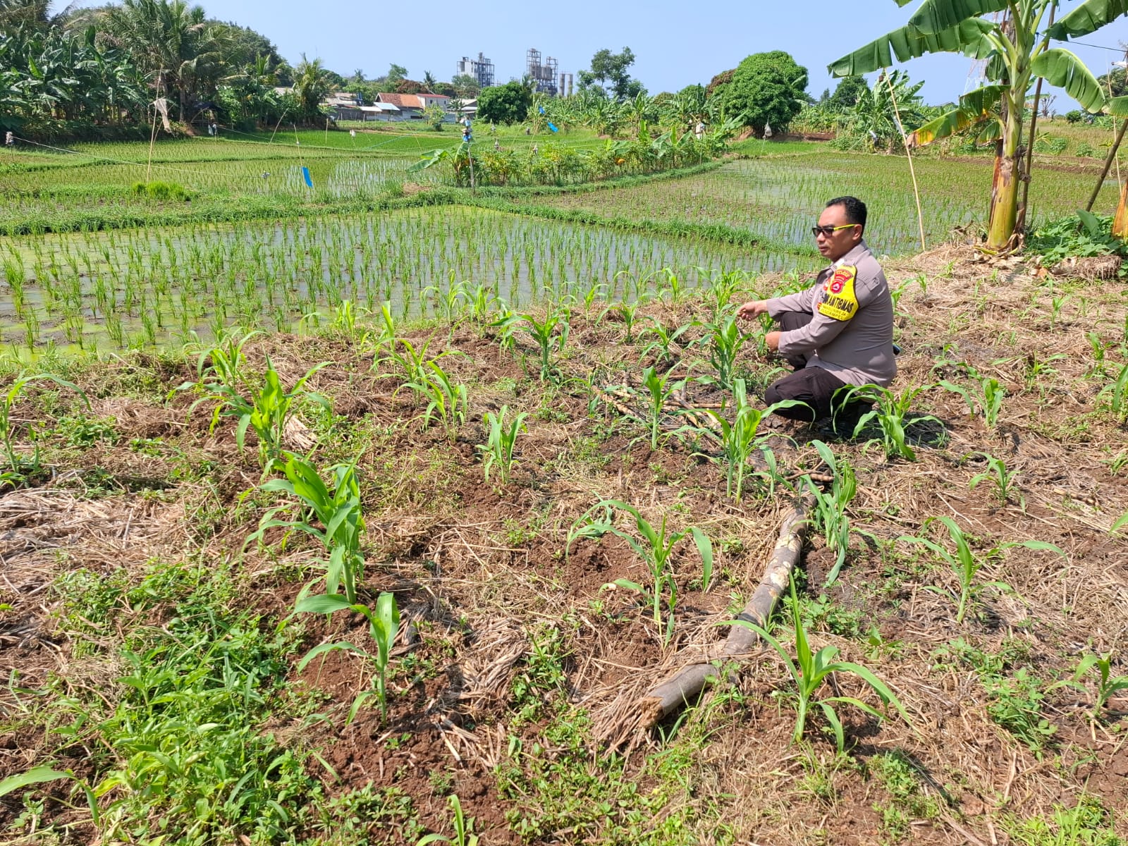 Ppantau aktif lahan jagung pok tani sinarjaya kecamatan puloampel Desa sumranja oleh Bhabinkamtibmas Polsek Puloampel